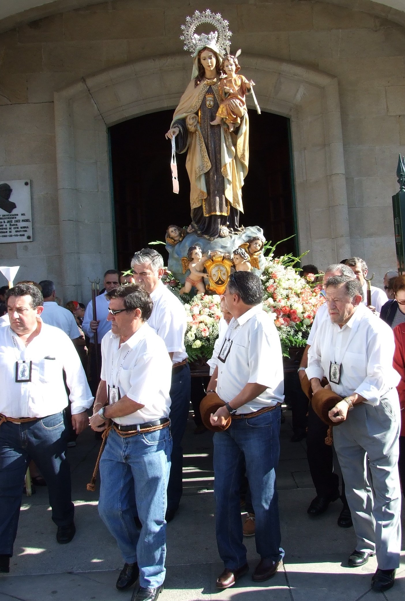 Antonio Couso a la izquierda portando el cordón del estandarte de la Virgen del Carmen