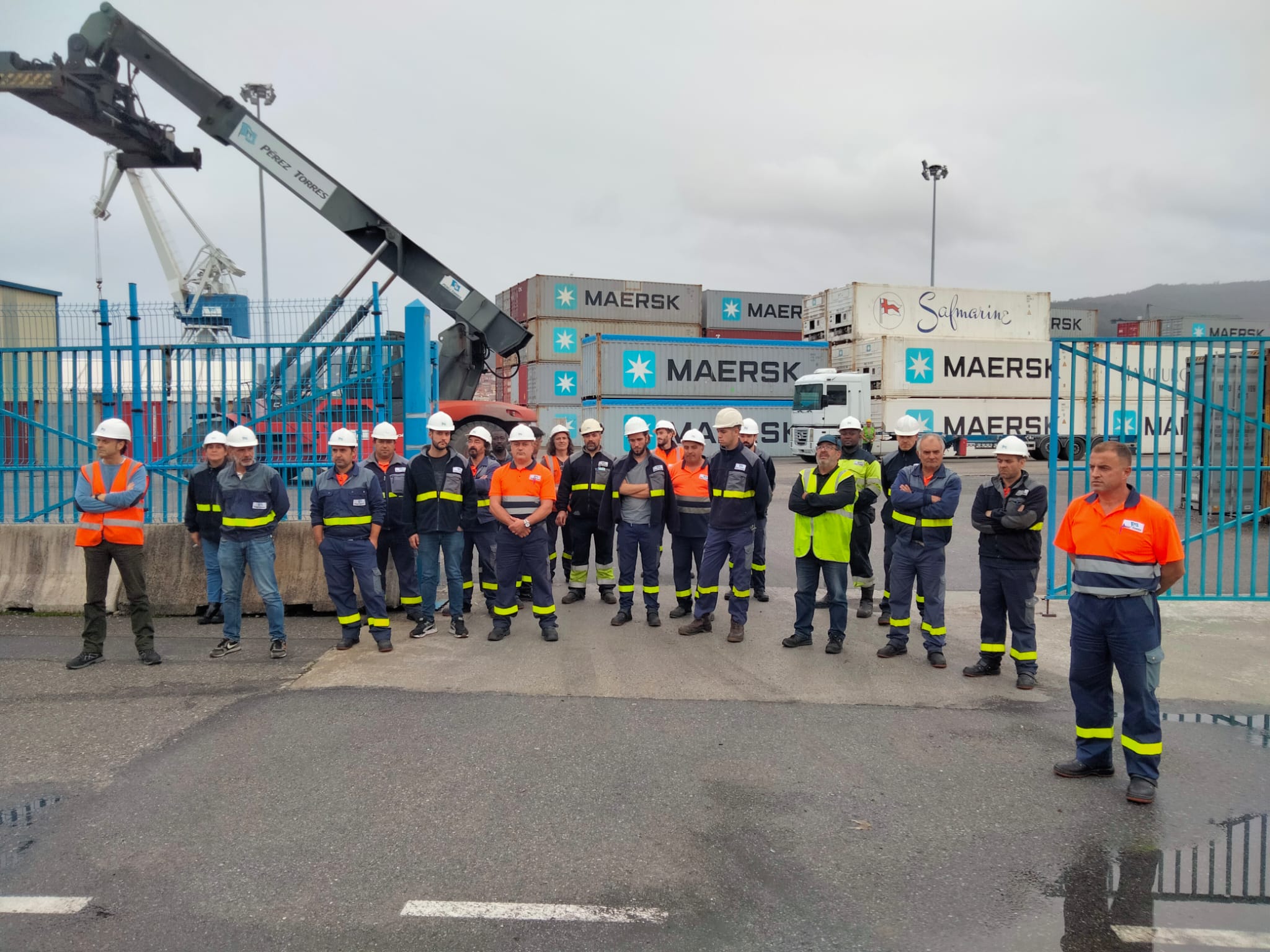 Durante el Pleno se escuchó una sirena probablemente de algún barco y un numeroso grupo de trabajadores de la empresa Pérez Torres se aportaron al paso del vehículo como señal de despedida al trabajador de NOGAR.