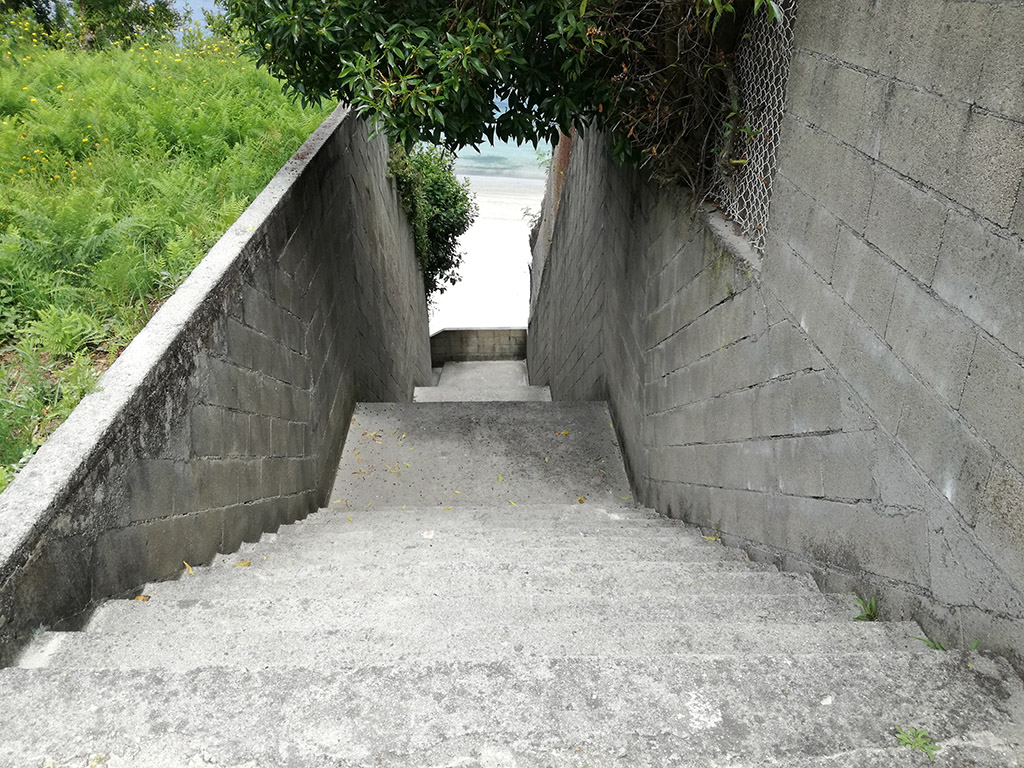 La persona que nos remite las fotografías que reflejan perfectamente el peligro desconoce si estas escaleras son de propiedad municipal o del establecimiento de hostelería que tienen al lado porque, apunta, “no hace muchos años se bajaba a la playa por el medio del restaurante lo que suponía un engorro para los clientes del mismo con lo que se realizó esta obra que puede considerarse una acertada permuta ya que separa una cosa de la otra”.