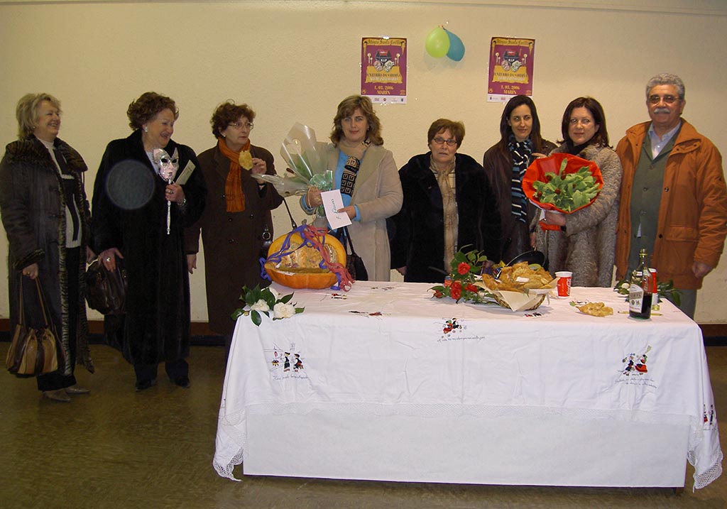 En el programa integrado del carnaval marinense, desde hace muchos años se convoca el concurso de “Filloas e Orellas” en el Ateneo Santa Cecilia. Condición indispensable que sean “trece orellas trece e trece filloas trece”, ni una más y cada año los expert@s en estas especialidades culinarias, sin descubrir los secretos de sus abuelas, dejan impronta de su buen hacer. El jurado decide, otorga y entrega los premios y el público asistente se pone las botas con el resto de las viandas. Aquí está la imagen de las ganadoras en el año 2004