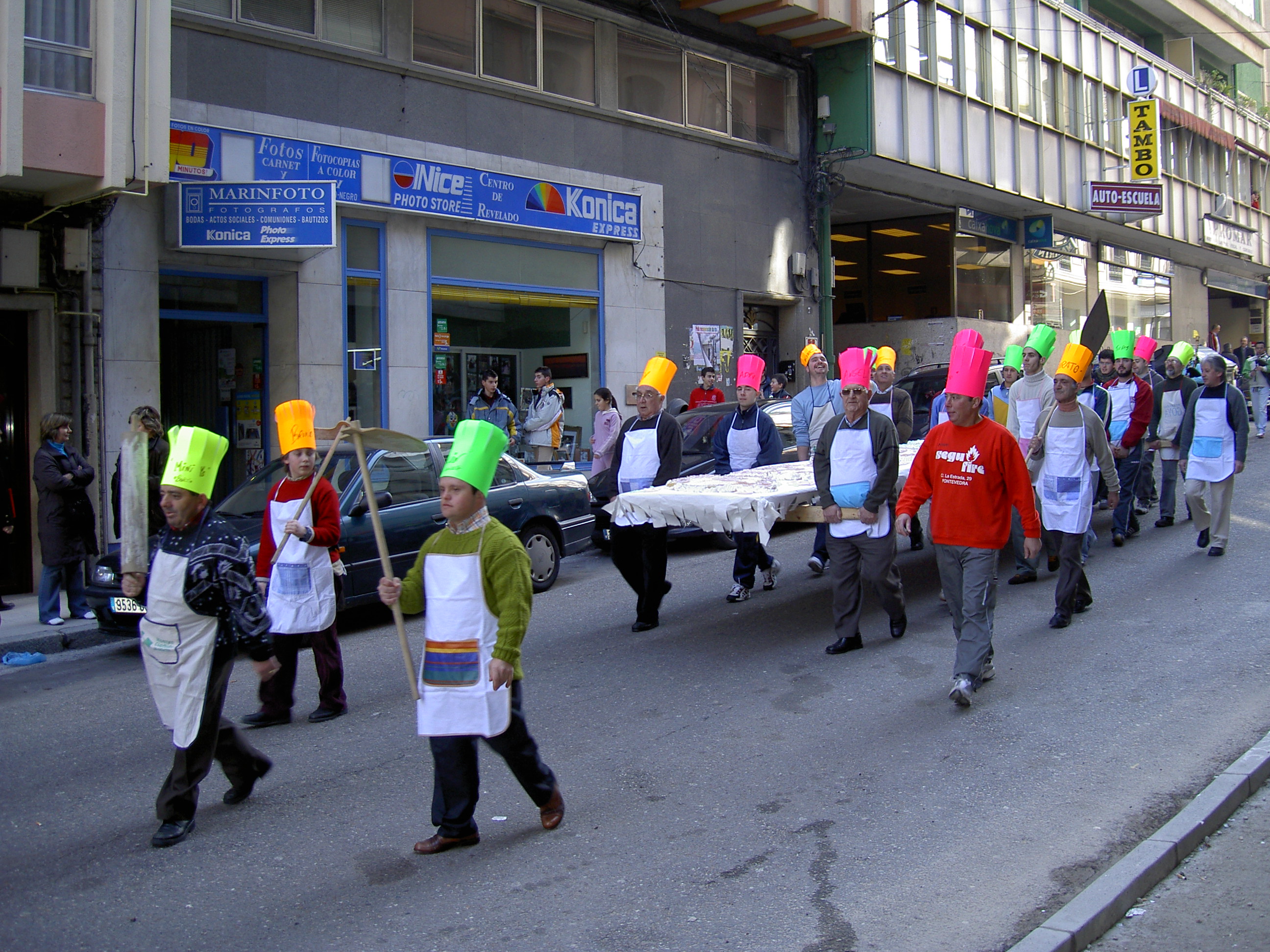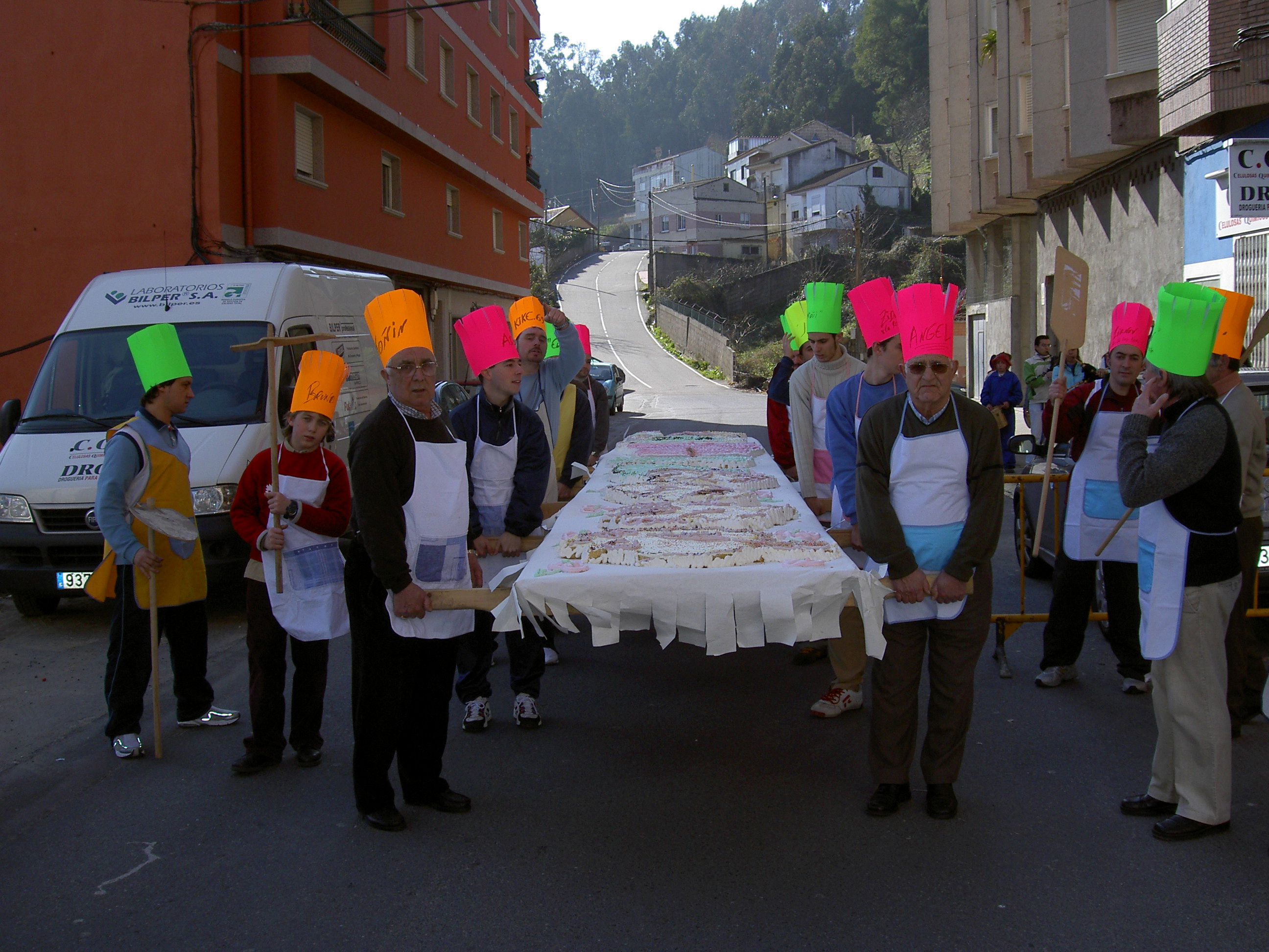 La asociación “Amigos dos Rapaces” organiza, cada año fuera de pandemia, la fiesta infantil del “tartazo”. En el año 2005 se confeccionó una deliciosa tarta que, con la espectacularidad de siempre, fue paseada a hombros por el centro urbano antes de recalar en la Lameira para dar buena cuenta del pastelazo del que disfrutaron pequeños y mayores y más de uno lo vio estampado en su propia cara.
