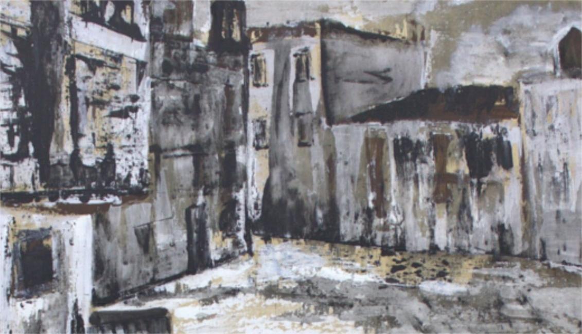 Nos cadros desta autora destacan os trazos de espátula e a mestura directa dos acrílicos na tela xeran néboas de cor, ritmos que evocan construcións sen nome; podería ser unha torre, un castelo, unha muralla, unha ponte, unha fronteira, unha ruína, unha ría, un lugar posible de habitar, unha cidade soñada dos que dí que son “Espazos en distintas horas do día, da noite, da brétema... en calma ou buliciosos, de soño ou recoñecibles... Non hai pretensión ningunha de chegar a Ítaca senón de gozar do proceso, do traxecto”.