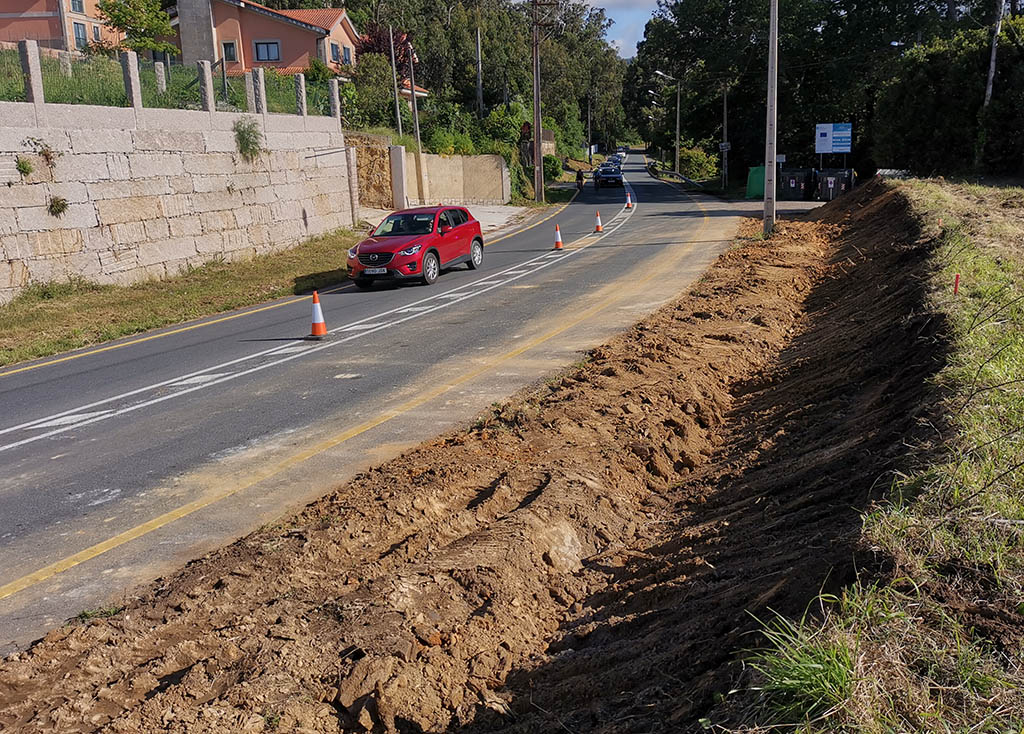 Se trata de una nueva senda de casi 1 kilómetro por la margen derecha de la carretera, en hormigón colorado, con un ancho mínimo de 1,80 metros, que dispondrá de una pequeña estructura en voladizo en la zona donde existe una obra de paso, en Pozo da Revolta. Además, para facilitar el cruce entre la senda existente por la margen izquierdo de la carretera, se dispondrá un paso de cebra con semáforo con pulsador, antes de la parada de autobús.
