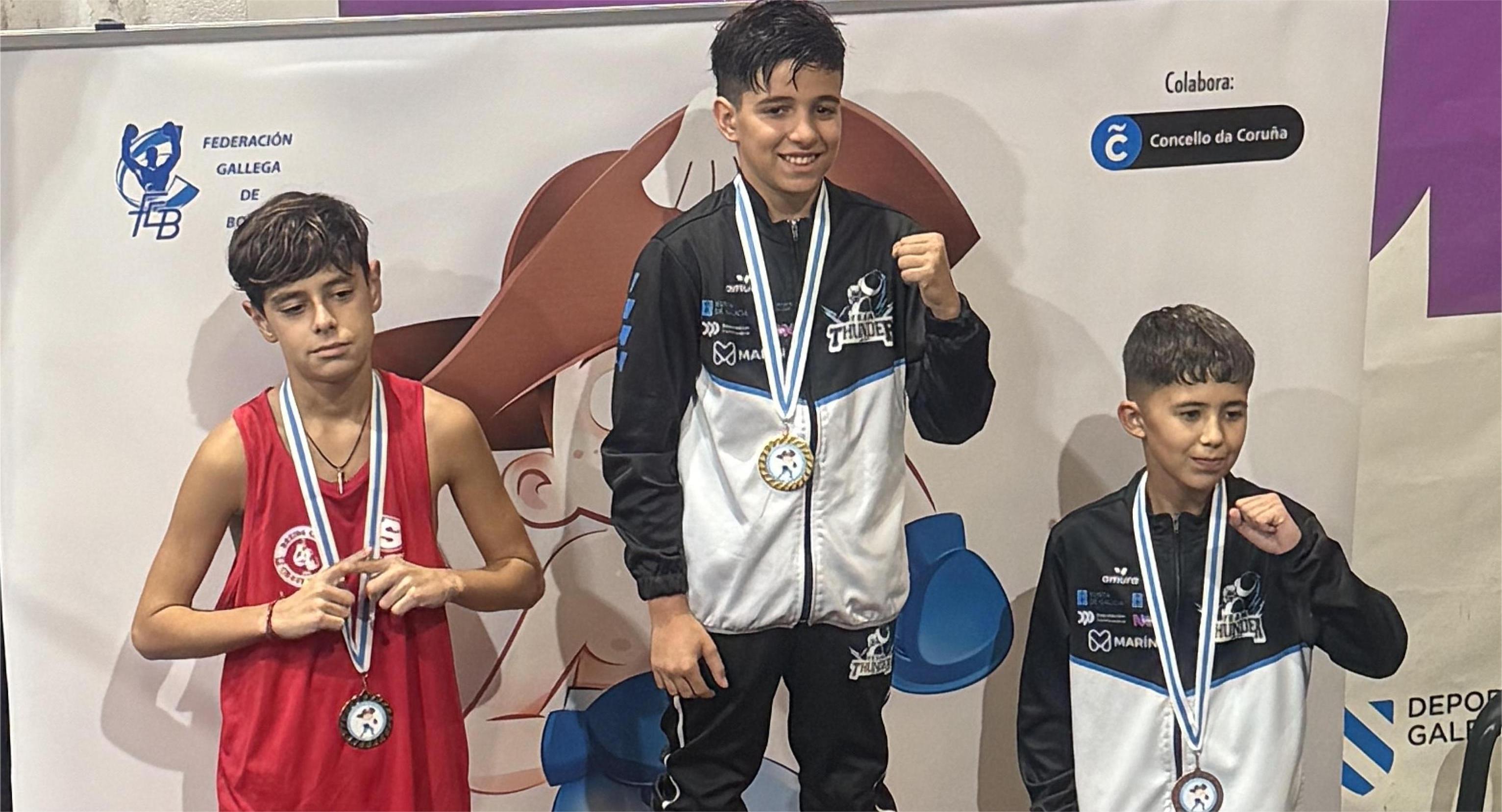 El equipo de boxeo Team Thunder de Marin logró un destacado papel en los Campeonatos Gallegos de Schoolboy, celebrados este domingo en La Coruña, donde se desplazaron durante toda la mañana para competir con los mejores púgiles de la comunidad.