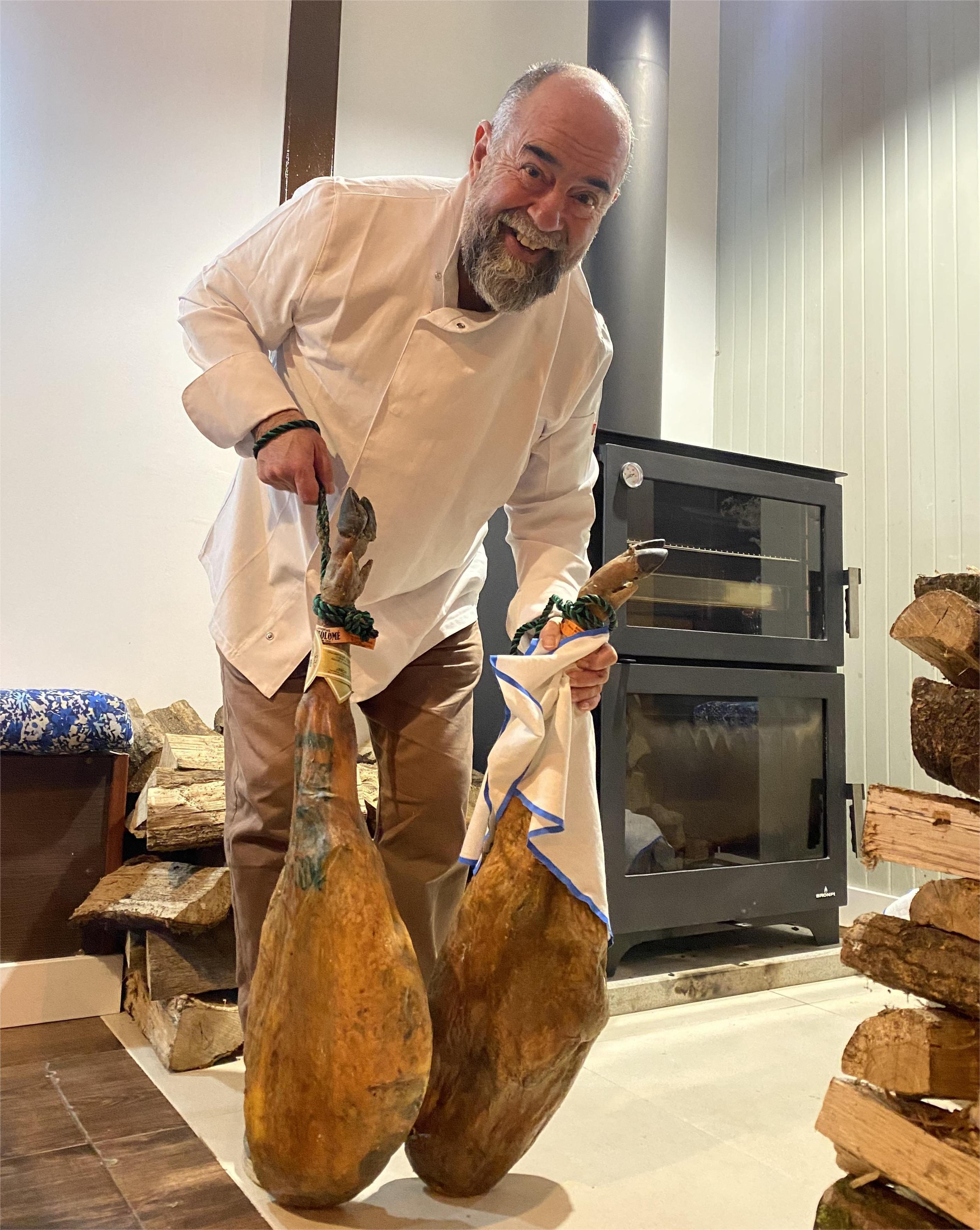 Alfonso Díaz pone especial énfasis en el jamón de bellota 100% ibérico, que se incorpora al menú en primicia para estas fiestas navideñas y del que se puede disfrutar “a esgalla –asegura él-. No va a ser jamón al escondite”.