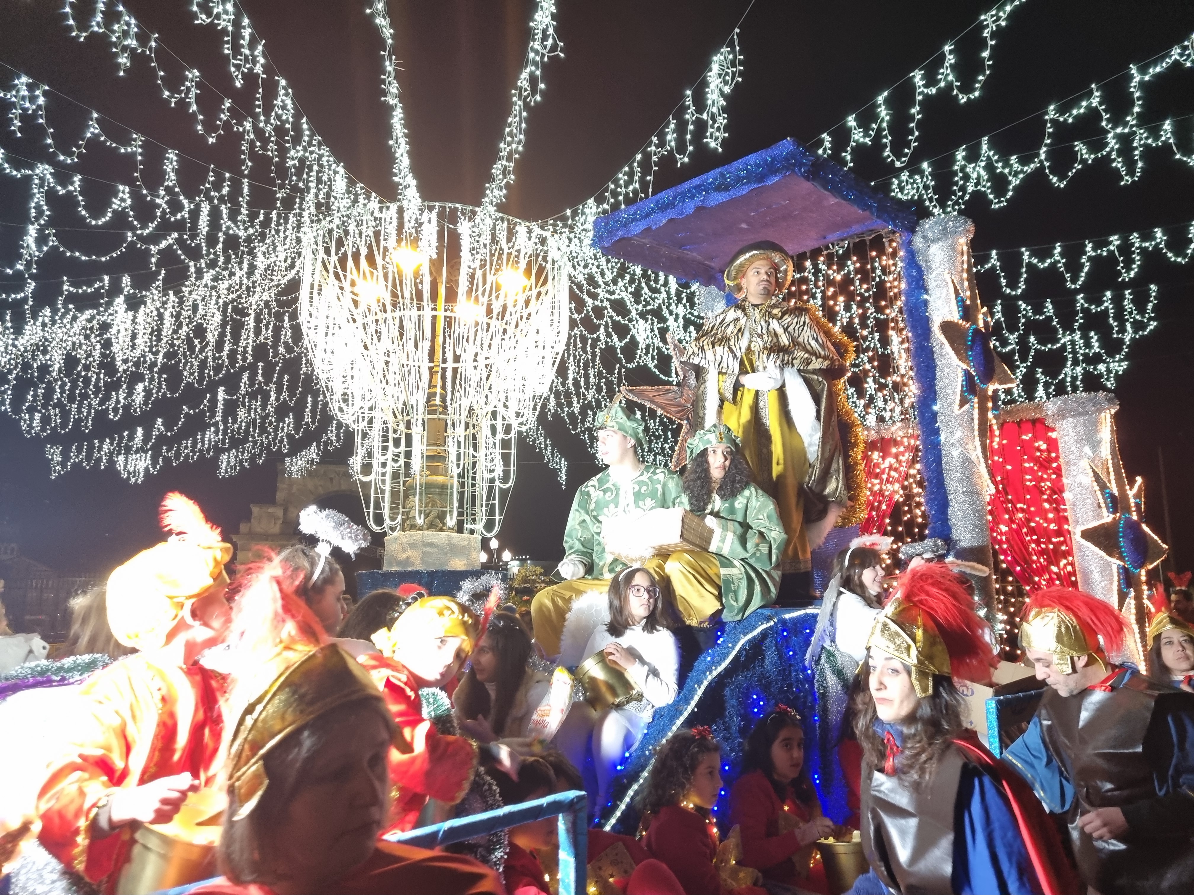 Minutos después los Reyes bajaron a la calle y fueron subiendo a sus carrozas para iniciar el recorrido de la Cabalgata que fue seguido por una auténtica multitud de niños, niñas y mayores a lo largo de todo el recorrido desde el concello hasta el Nuevo Templo.