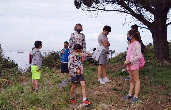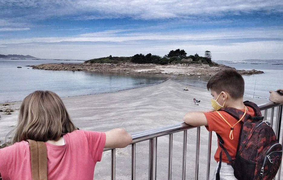 No siempre se puede ir caminando hasta la "Illa do Santo", en Ardán, porque las mareas solamente lo permiten cuando son muy acuciadas por efecto de las llamadas fases lunares especiales como ésta que estamos atravesando desde ayer, un eclipse lunar total o luna de Sangre. En el centro escolar sabían que se podría, y por ello estuvieron haciendo algunos trabajos de investigación y documentación sobre la isla para estar preparados para dar el salto en el momento oportuno.