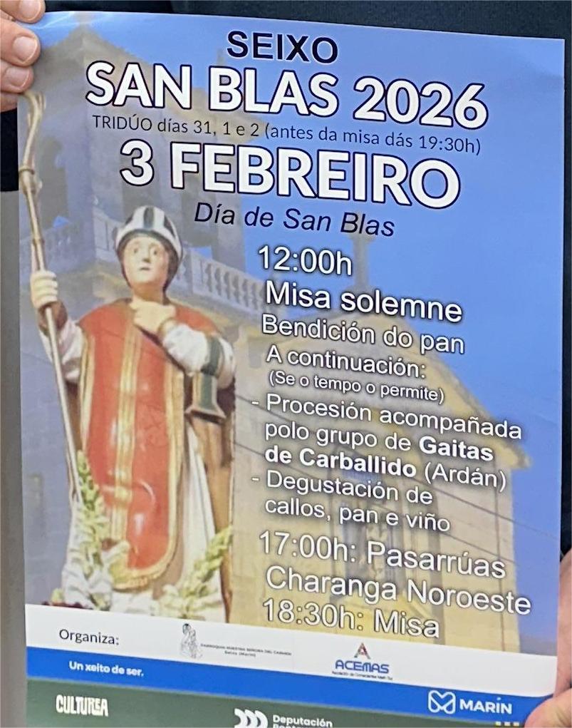 Y así será el día 3 de febrero, miércoles próximo, en que la fiesta está asegurada con el aderezo gastronómico, otra costumbre que va para tradición, de la degustación de callos , pan y vino, al término de la procesión con la intención de la organización de la fiesta de crear u ambiente festivo y de convivencia parroquial y con las personas que se acerquen a Seixo en tan sonado día.