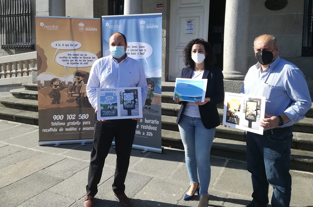 La concejala responsable del área medioambental, Marián Sanmartín, junto con el representante de la empresa Recolte concesionaria del servicio de recogida de basuras en Marín, Juan José Castro, presentó ayer la campaña de concienciación ciudadana de este año con la intención de llegar a los vecinos que todavía no respetan las normas que debieran regir, aunque fuese tácitamente en el servicio, para evitar algunos malos resultados inherentes, precisamente a esa falta de responsabilidad ciudadana.