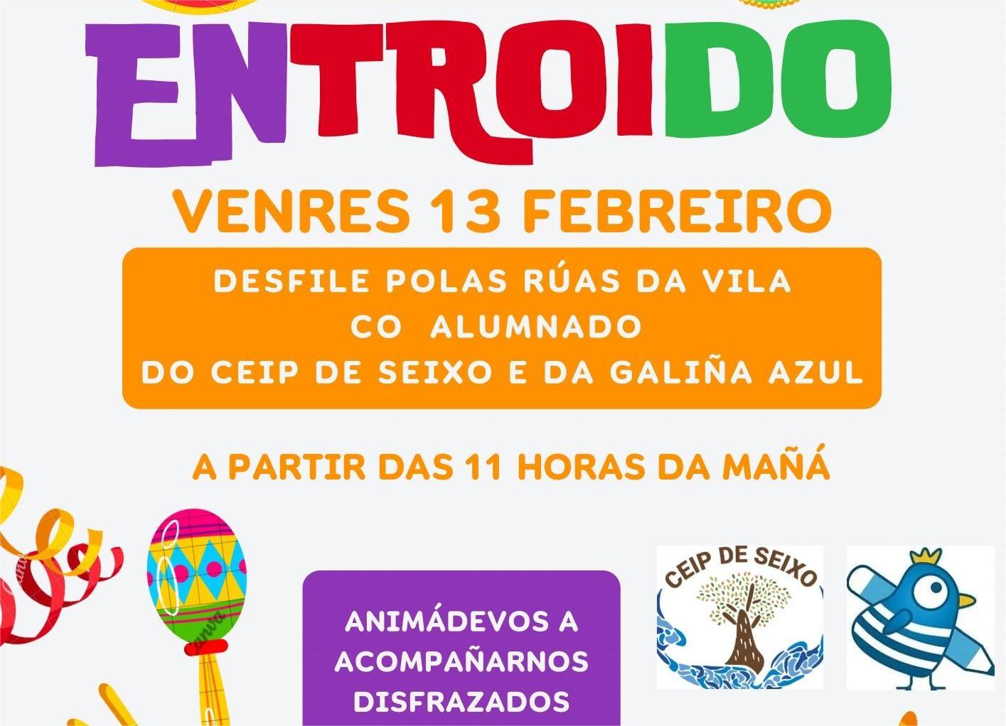 Tal é ocaso del colegio público de Seixo que, coa colaboración da ANPA que ao longo da semana velen realizando o “mandadiño” co que os alunos han de cumprir ordes en canto a vestidos segundo as indicacións que reciban a cotío. Finalmente, o venres, contando que o tempo climatolóxico deixe, protagonizarán un desfile pola parroquia vivindo o seu Entroido fora da escola en compañía dos nenos e nenas da “Galiña Azul”.