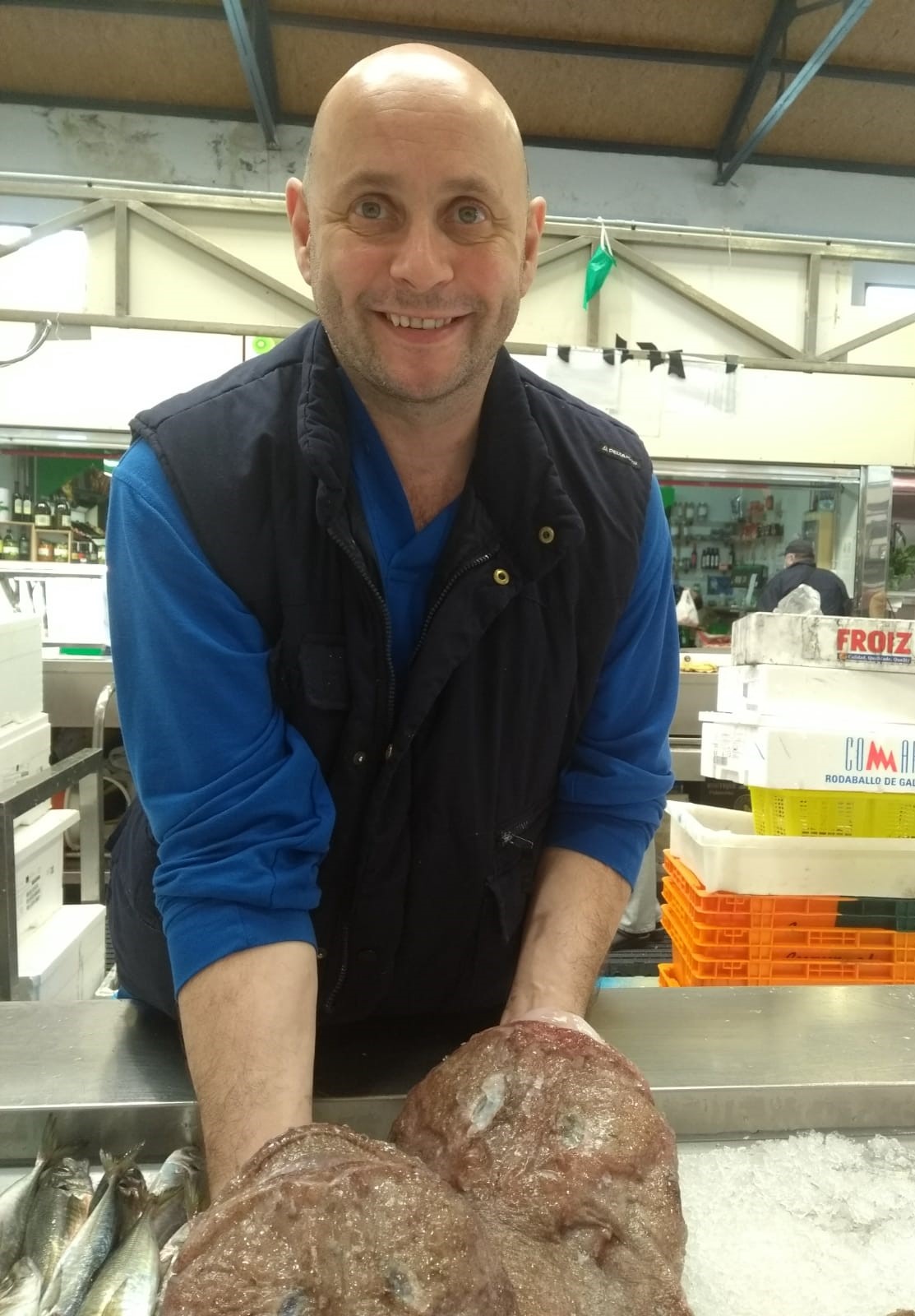 Sebas Portas Salazar no viene de tradición marinera, pero ha sido capaz de crear una saga propia con su personalidad. Ha heredado la vena comunicadora de su padre, el gran periodista Luis Portas del “Diario de Pontevedra” y la empresarial, por parte de madre, de la familia Salazar. Sebas subasta el pescado en la Lonja de Marín a todas y cada una de las pescaderas compañeras de bancada de la Plaza. Además, él tiene su propio puesto en el Mercado, que se encuentra entre la puerta principal y la puerta Norte. Ofrece productos de primera mano, lo mejor de lo mejor: cigalas, rapes, rodaballos… Pero, realmente, lo que más importante es que si le encargas cualquier pieza, él te la consigue. Siempre y cuando algún barco la haya pescado, ¡claro!