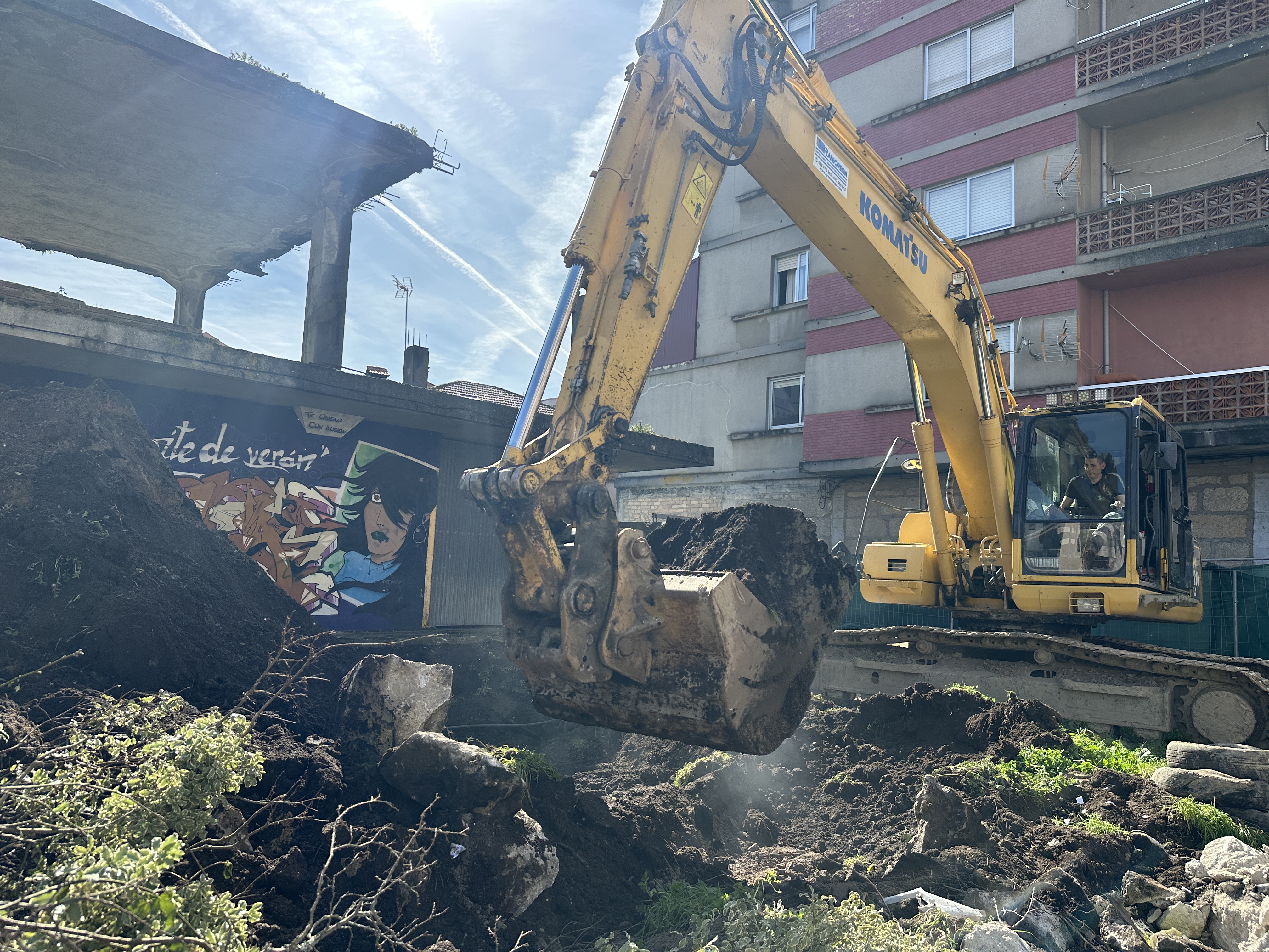 El primer paso de los trabajos consiste en la excavación previa del espacio para permitir las evoluciones de la maquinaria necesaria y continuar con la demolición integral del “esqueleto” que podría ya no estar a mediados del mes de abril