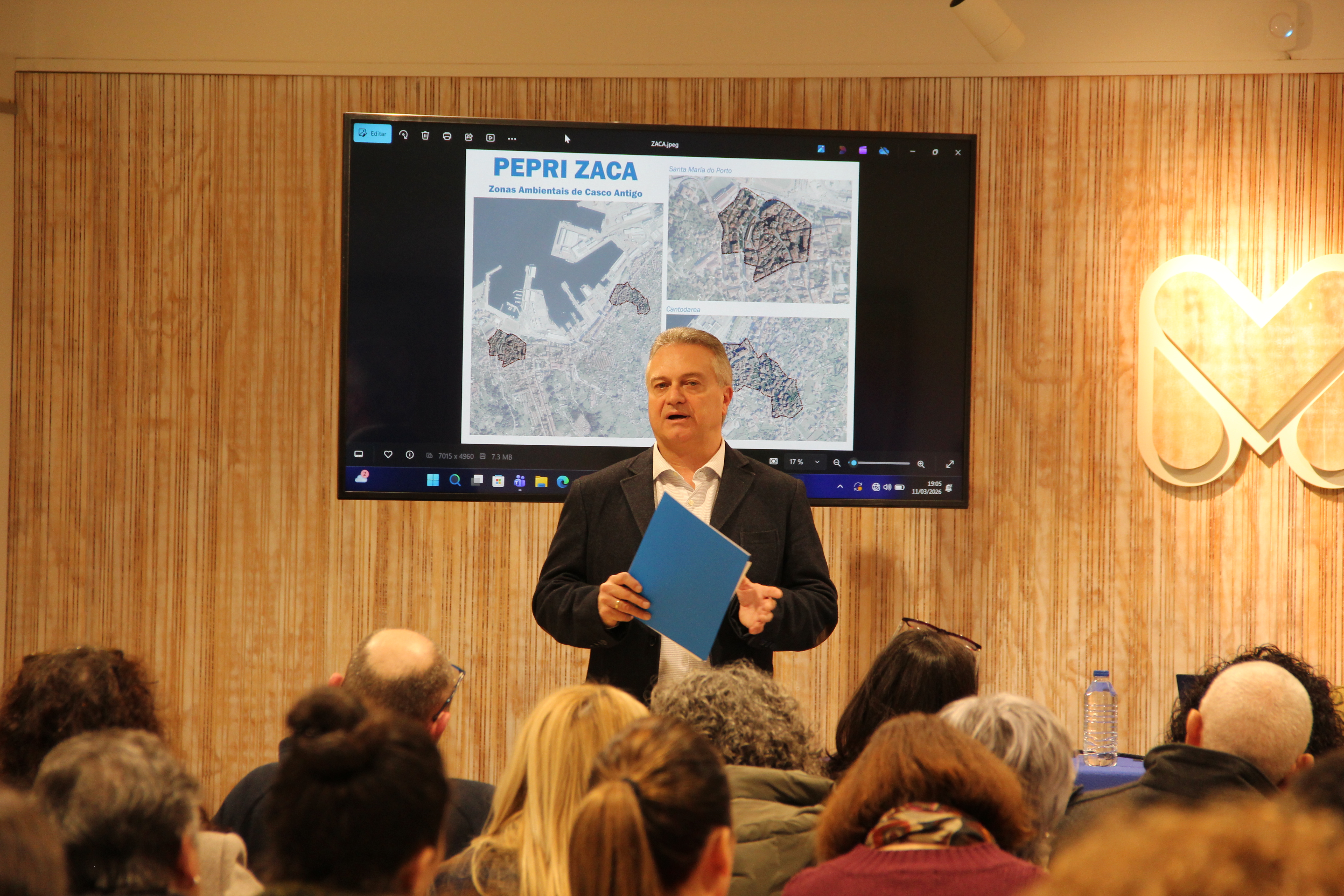 Manuel Santos, que explicou as bases do que é o Plan Especial, “un documento que permitirá definir as liñas urbanísticas e de desenvolvemento urbano dunhas zonas que requiren dunha protección e atención especial, como son o Casco Vello e Cantodarea”.