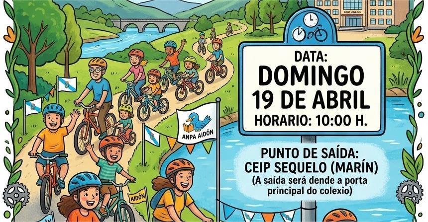 La ANPA del Colegio Sequelo recuerda que está en marcha la organización de la “Ciclomarcha Familiar” que tendrá lugar el próximo domingo día 19, en la que podrán participar personas de todas las edades que puedan pedalear una bicicleta. La reunión será en la puerta principal del colegio y la salida está prevista para las diez de la mañana por un itinerario fácil para todos y sin peligro.