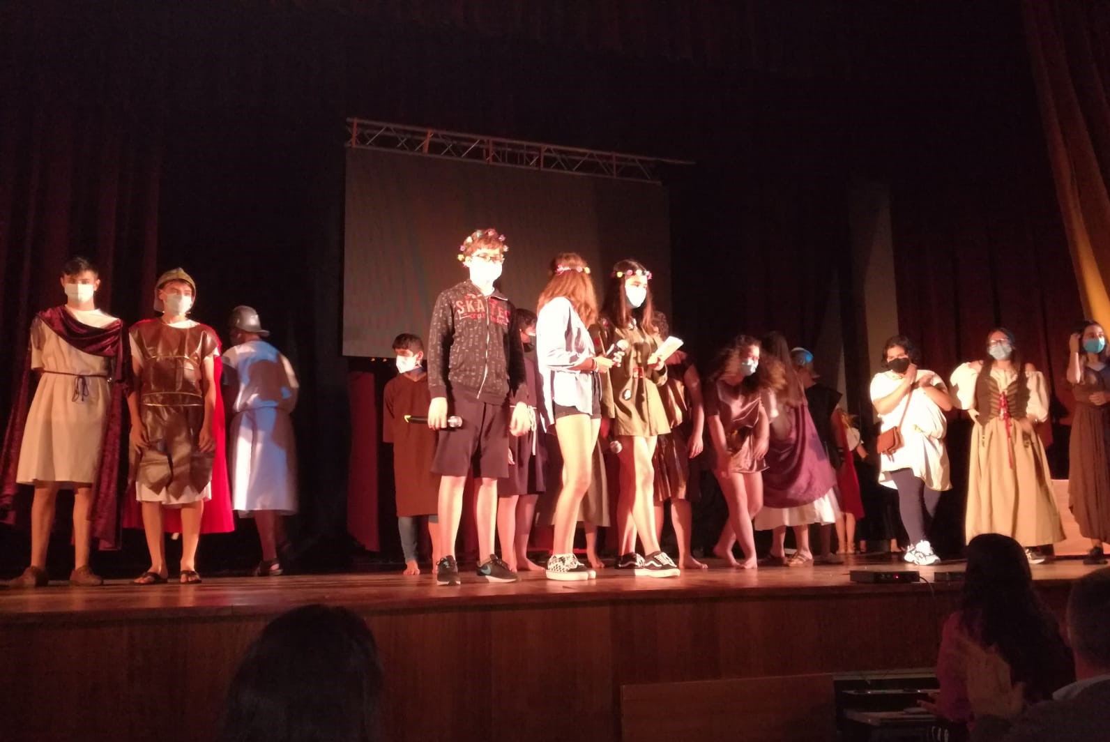 Los asistentes al acto pudieron ver la recreación de la historia de Marín perfectamente diseñada por los alumnos de segundo quienes debidamente ataviados con vestimentas de las distintas épocas y con una redacción impecable de la historia local, dejaron a la vista de los asistentes la secuencia historia de esta villa, actuación que fue muy aplaudida y reconocida por los asistentes, en especial Víctor Feixanes que en su intervención elogió la performance presentada.