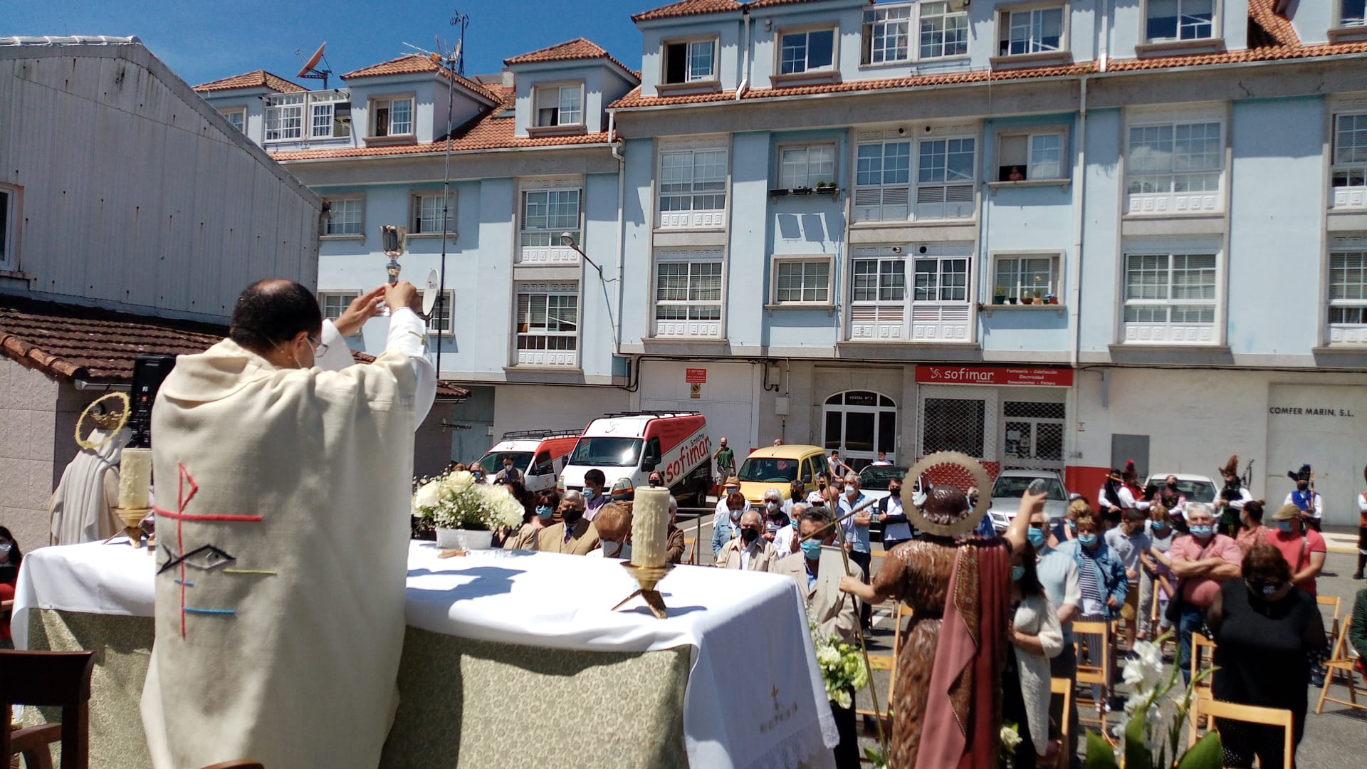 La pandemia, como en otras muchas celebraciones religiosas, impidió otro año más la celebración tradicional de la fiesta del Patrón de la Barriada de Pescadores (A Cañota), pero los vecinos no quisieron quedar sin honrar al Bautista por lo que de acuerdo con el cura párroco de Marín David Mohedano, organizaron la celebración de la Eucaristía en el exterior de la capilla, ceremonia a la que asistieron numerosas personas del barrio.