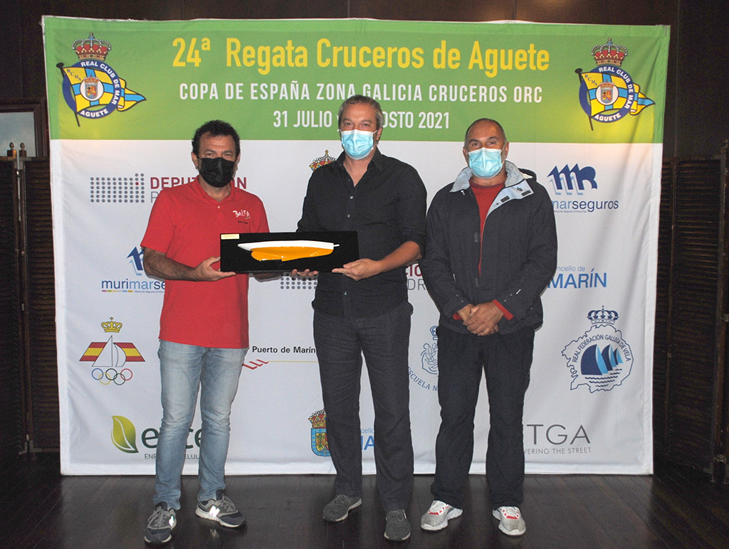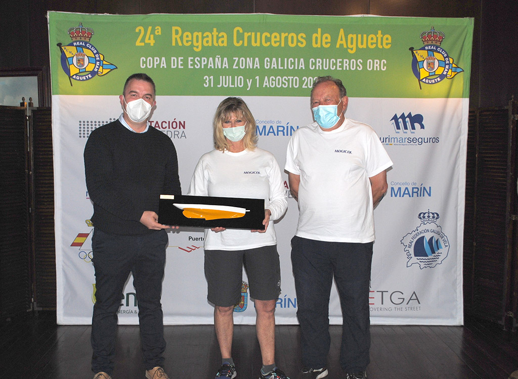 La entrega de premios tuvo lugar en la propia tarde del domingo en las instalaciones del Real Club de Mar de Aguete con asistencia del concelleiro de Deportes de Marín, Antonio Traba; el deputado provincial de deportes, Gorka Gómez; subdirector de la Escuela Naval Militar, Capitán de Fragata Víctor Villar Mielgo; delegado de Murimar seguros, Carlos Cancela además de la junta directiva del club organizador, comandada por su presidenta Maca de la Puente y la comodora Celina Torrado.