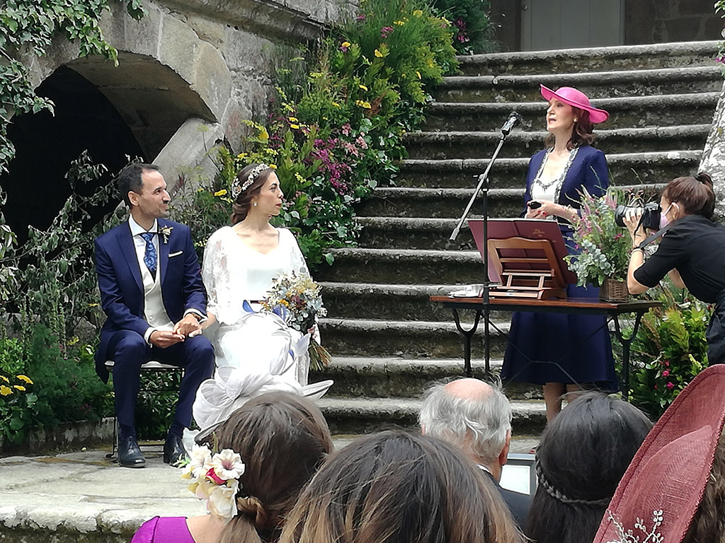 La ceremonia realizada con gran brillantez y momentos de notable emoción, fue oficiada por el teniente de alcalde de Marín y Diputado en el Parlamento Gallego, Manuel Santos Costa quien, previamente a la declaración del compromiso mutuo entre Manuel y Virginia les dirigió unas emotivas palabras de consejo y felicitación por la decisión que estaban tomando en aquel momento.