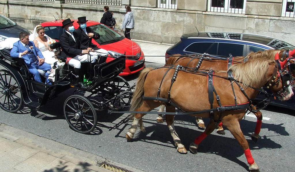 Una hermosa carroza de tirada por dos magníficos corceles sorprendió ayer a los vecinos de Marín que la vieron discurrir por las calles de la localidad transportando a una pareja de felices novios que habían contraído matrimonio pocos minutos antes en el Nuevo Templo Parroquial.