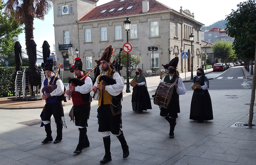 La hora del aperitivo del domingo fue amenizada por el Grupo de Gaitas 'Pousos de Area' que recorrió las calles de Marín y visitó los cuatro restaurantes participantes.