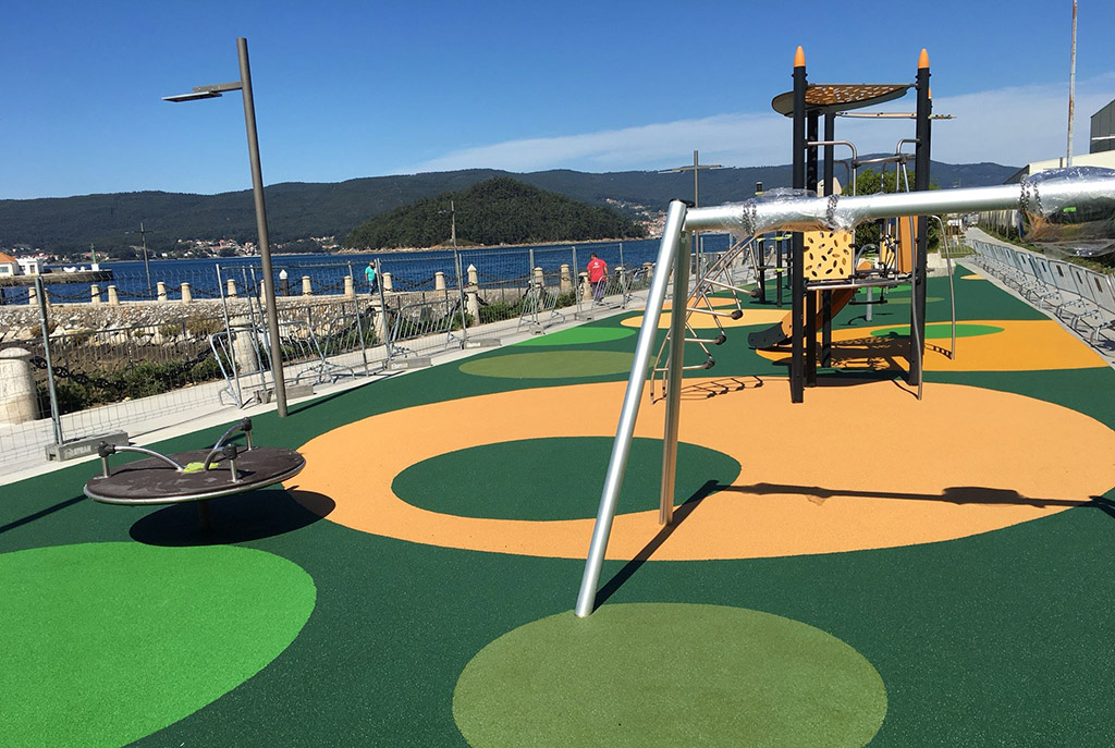 Una de las mejoras importantes de la obra es la sustitución del piso de caucho de los recintos de juegos para los más pequeños que ya cuentan con una nueva estética por los vivos colores y las formas circulares que ahora presenta y, desde luego, mayor seguridad par a los usuarios por el colchón que supone el nuevo pavimento que ofrece un espacio atractivo e integrado paisajísticamente