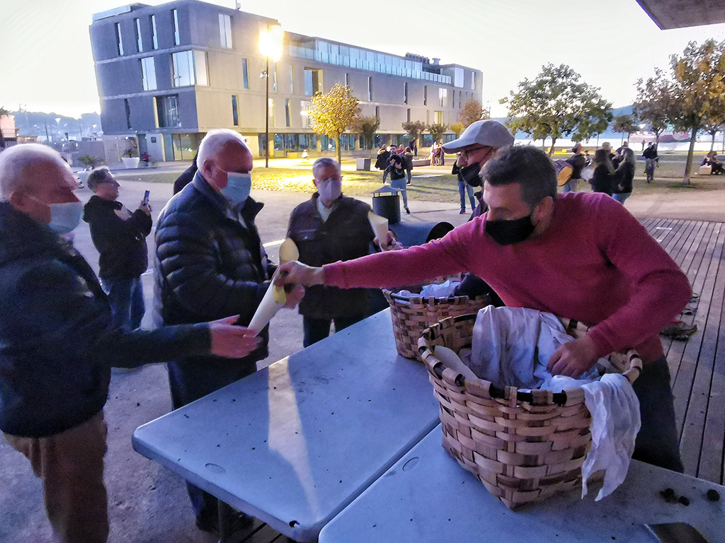 Ramón Castro y sus compañeros de la asociación se mostraban muy satisfechos por el éxito sin precedentes de esta fiesta que les anima a mantener el evento en su programación. “Para nós é moi satisfactoria a resposta do pueblo que está aquí con nós e para o que organizamos varias cousas no ano como por exemplo os talleres de pesca e navegación básica para os rapaces de Marín, actividade da que estamos moi satisfeitos”- manifestó Castro quien no se olvidó de agradecer al concello de Marín la colaboración para celebrar o magosto e en xeral para as actividades que se fan, como tamén a ENCE que acoge en su programación social los quehaceres de TENLO. “Sin esas axudas e sen o empeño dos nosos socios en facer ben as cousas, non poderíamos fecer nada disto”- declaró Castro a Carriola de Marín mientras revolvía el aguaardiente de la exquisita queimada preparada para rematar la jornada.