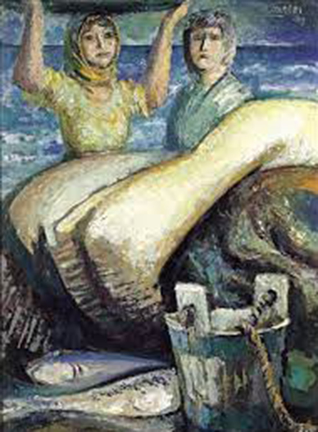 Nada que añadir. Quienes conocen la obra de Manuel Torres, no necesitan de este recorrido por las rúas marinenses propuesto por quien esto suscribe. En todo caso, diría que el olor, el rumor penetrante por los sentidos oportunos, le faltarían a ese paseo virtual. Sus cuadros no son otro asunto que recorrer esta Banda do Río, cuando lo era: tipología de la vivienda, con sus colores, sus brillos, sus luces. Sus embarcaciones balanceándose con la ida y venida de las mareas. Las pescantinas trayendo y llevando sobre su “molete enteiro servilletado” el preciado fruto del mar aún vivo. Manos, miradas, arrugas, vestimentas que llevan en sus mandiles el rumor y el olor del mar. Calles, plazas, rúas hechas de mar y de habla marinense, batir de remos y redes a orear.