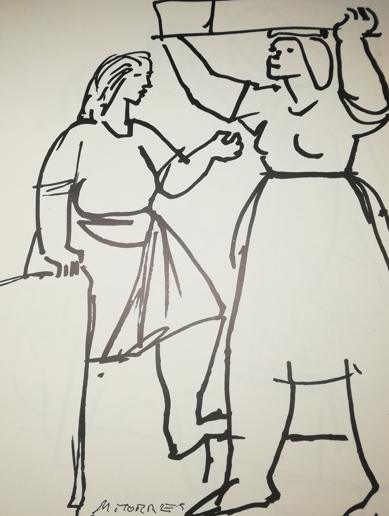 Remataba Filgueira: “Cántas veces o entrar Na sala Manuel Torres , paréceme escoitar ás xentes que perennnizou nos seus cadros”. Mas no hace falta: en las rúas de Marín, la algarabía lleva en su son esa forma hacer música del verbo hablado. Hemos tenido la impresión de recorrer las rúas, acompañados de un cronista, un escritor que, además, escribe en esa tercera dimensión: la pintura. Y lo hace como quien, en su día, lo recorría en su rutina diaria: en ese mundo de un Marín consuetudinario.