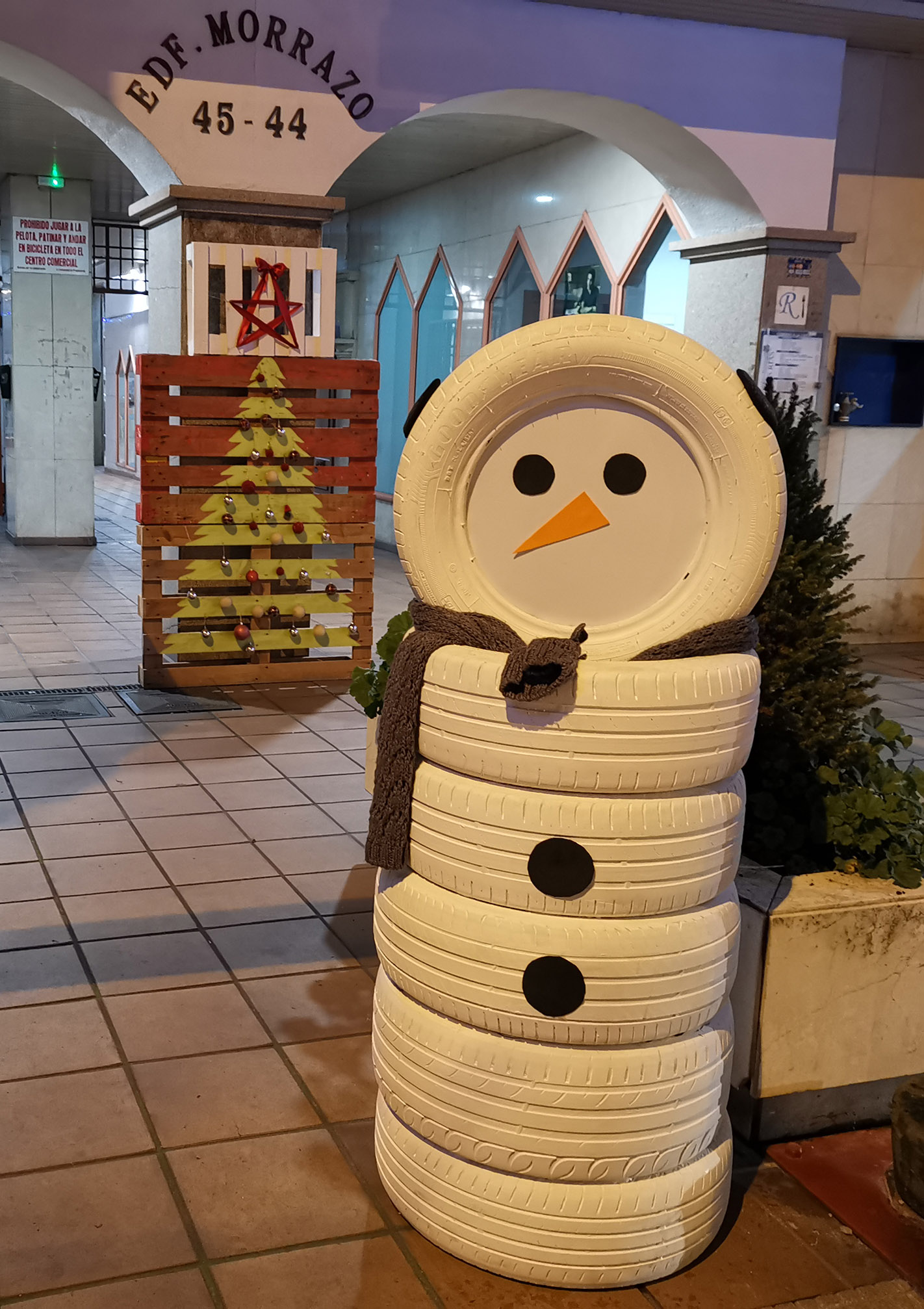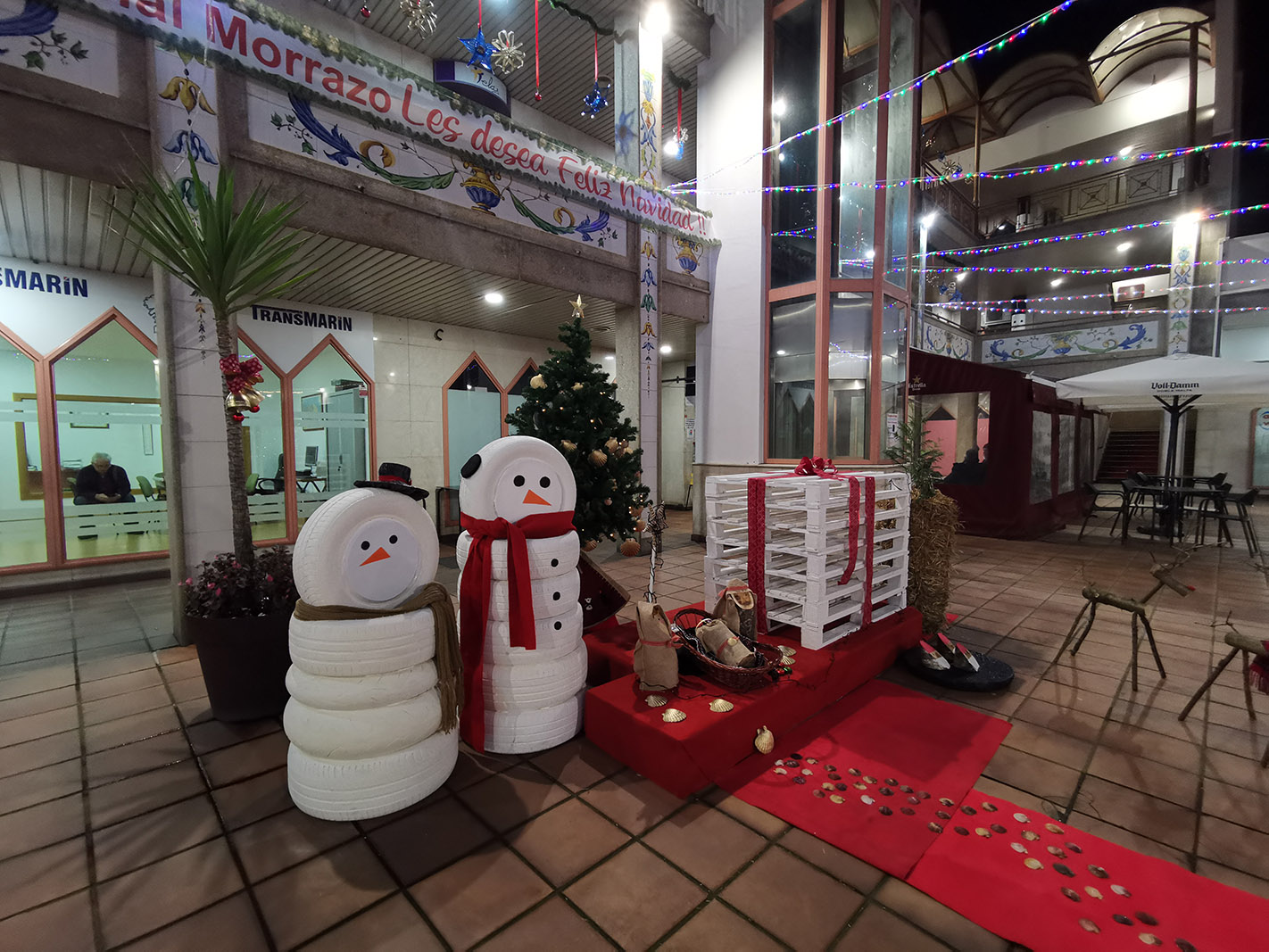 Llama la atención la decoración navideña que estos comerciantes de Marín han instalado en las galerías de su centro comercial, hechas en su totalidad con materiales reciclados. Nadie debería pasar sin ir a ver la decoración preparada por ellos mismos a lo largo de los últimos dos meses.