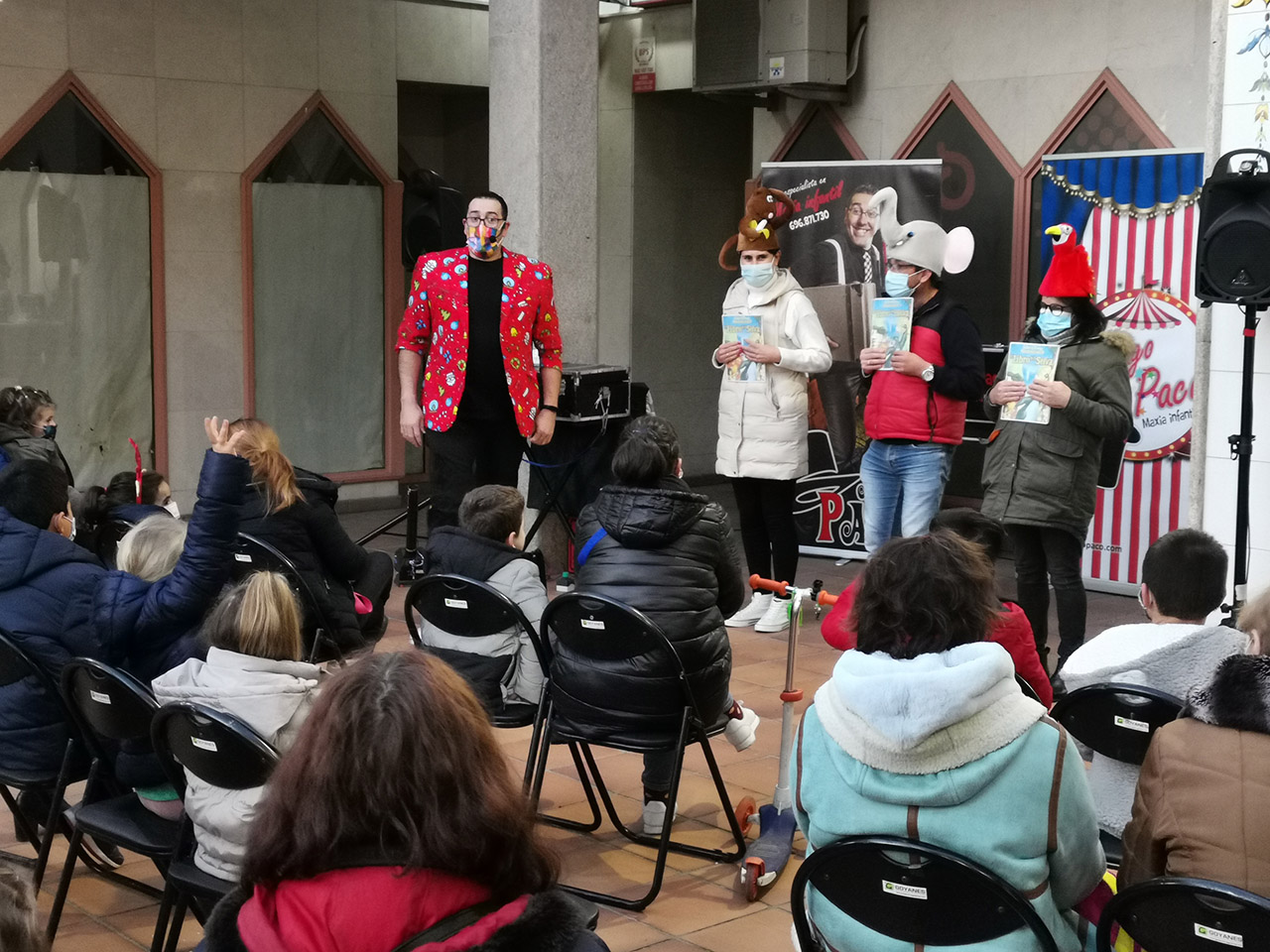 Comenzó la jornada con la apertura a las 16 horas de un mercado navideño en el que la mayor parte de los locales abiertos al público instalaron en la zona común sus puestos con artículos a precios asequibles en los que los visitantes pudieron hacerse con regalos navideños para toda la familia. Había artículos de salud e higiene corporal, artesanía, variedades, e incluso una bicicleta vintage que se vendía a bajo precio. Posteriormente, sobre las 17, comenzó la actuación de O Mago Paco en una sesión que el público tuvo que ver sentado debido a la normativa y restricciones del covid que continúa marcando, muy a nuestro pesar, los pasos de la población.
