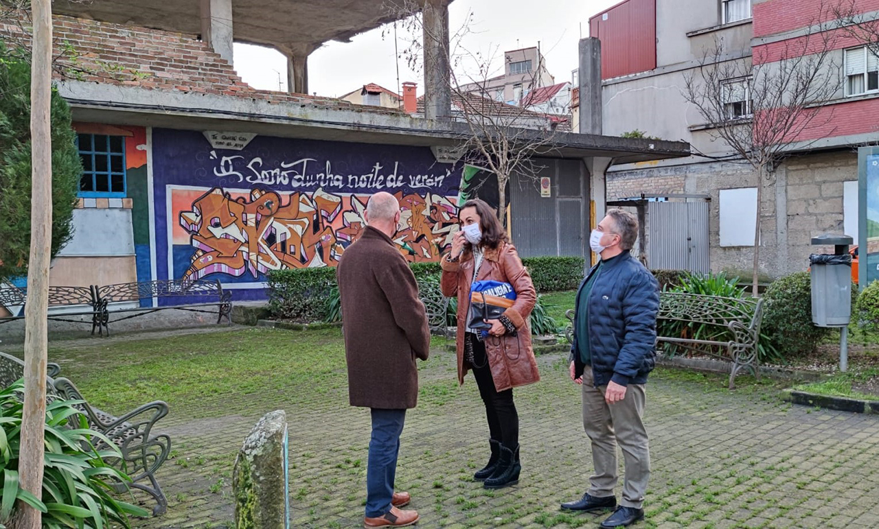 La alcaldesa María Ramallo con el concejal de Urbanismo, Manuel Santos y los técnicos de la obra visitaron el sitio para dar vía libre al inminente comienzo de la demolición de la estructura de un edificio que en lo que tiene, cuenta con una planta de bajo rasante, otra baja y la última una tercera con una composición de muros de hormigón y pilares de gran canto.