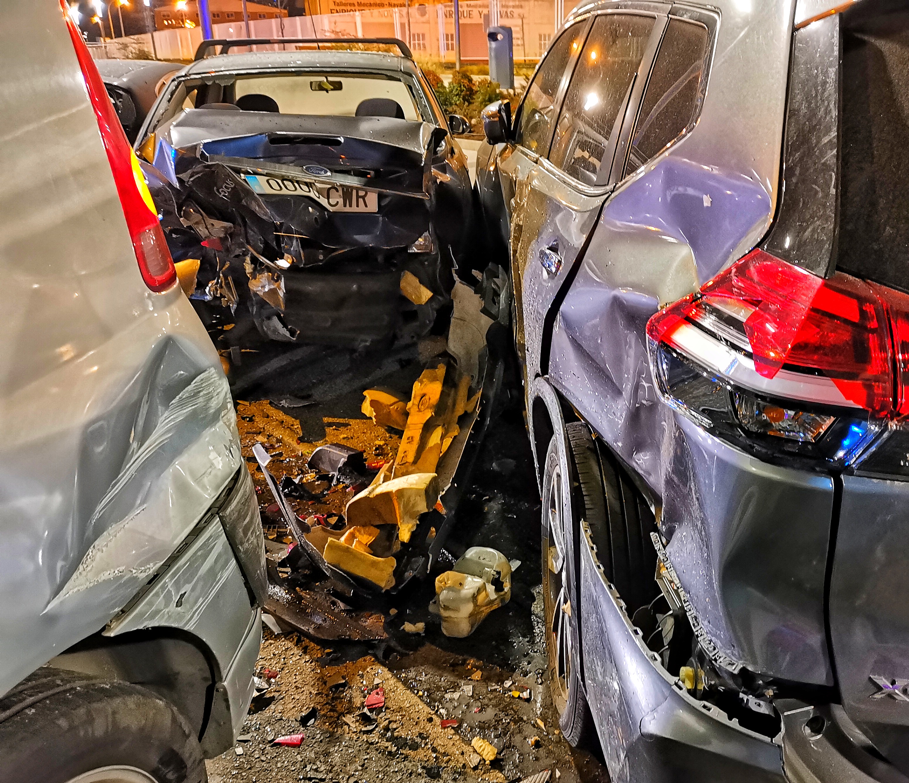 El accidente ocurrió a las dos de la mañana, cuando dos vehículos que circulaban a Gran velocidad hacia Pontevedra perdieron el control e impactaron contra otros ocho que se encontraban aparcados