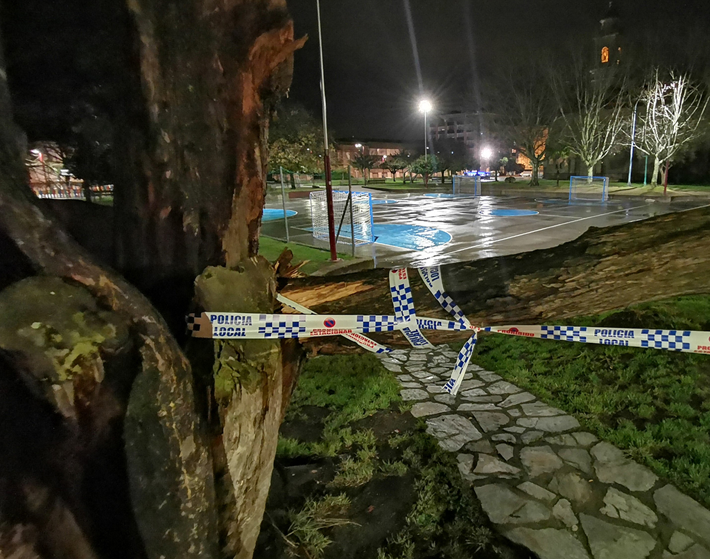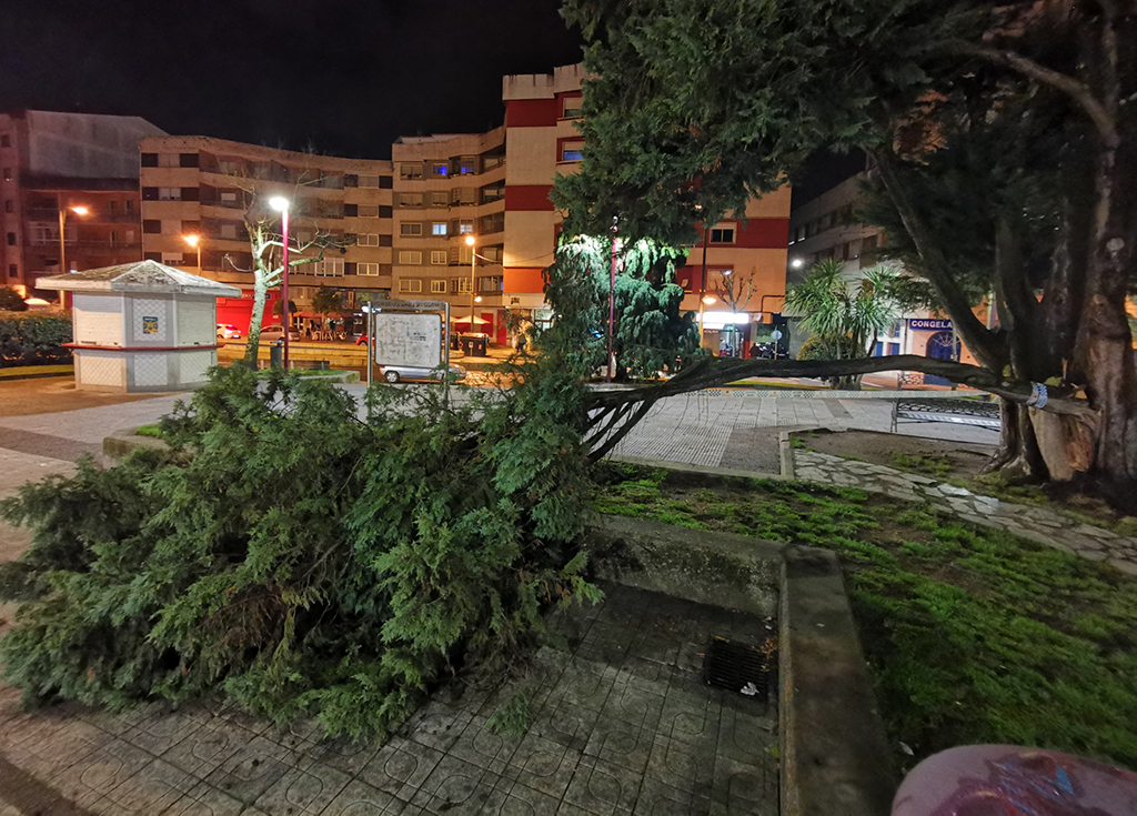 El temporal de viento provocó el desplome a primera hora de esta tarde de una rama de grandes dimensiones en uno de los árboles de la fila de tuias situadas en la zona más cercana al kiosco existente en la salida de la calle Ezequiel Massoni. El incidente no provocó daños más que los propios en el árbol en unas plantas que el Concello deberá analizar de nuevo debido a su mal estado, que ya ha provocado en el pasado podas selectivas en ramas secas por el peligro de desplome o daño a las personas que puedan pasear o estar sentadas en los bancos del parque.