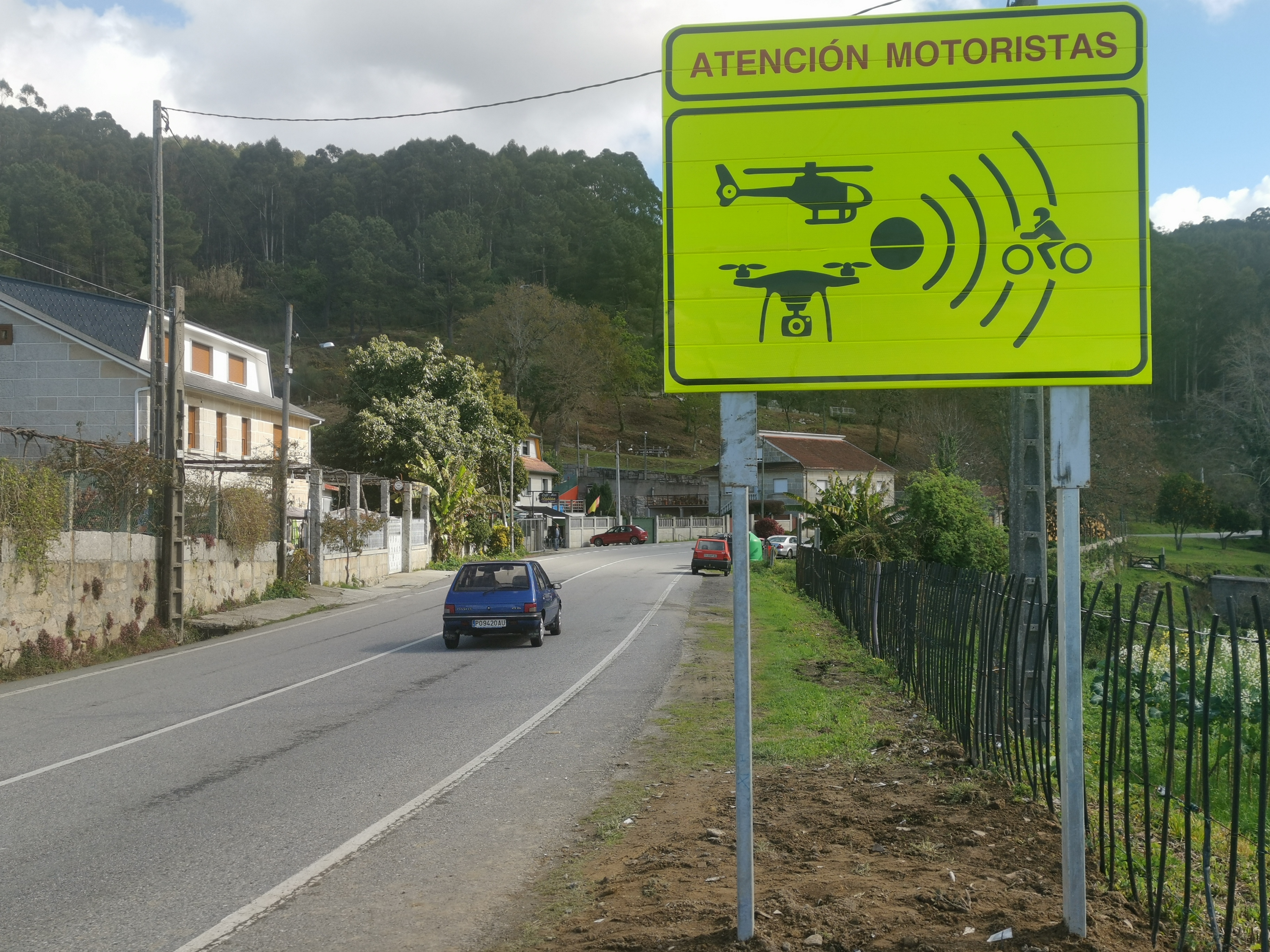 Unos carteles de color "amarillo chillón" advierten desde hace unos días en la vía provincial PO313, la que une Marín y Moaña, de la presencia en la zona de vigilancia aérea para tratar de reducir la siniestralidad en esa carretera. Llama la atención que en los carteles figuran gráficos tanto de helicoptero como de drone, lo cual avisa de que los controles aéreos serán frecuentes desde ahora en la zona.