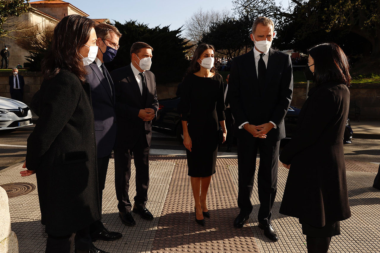 Llegaron Don Felipe, Hijo Adoptivo de Marín, y Doña Leticia al recinto alrededor de media hora antes del inicio de la Misa por lo que, en primer lugar se introdujeron en el colegio Inmaculada que se sitúa frente al nuevo templo donde se entrevistaron con las familias que escucharon sus palabras de condolencia y sintieron a Sus Majestades tan cercanas en estos momentos de angustia. Tanto al entrar como al salir del Inmaculada, el público que se encontraba en las proximidades prorrumpió en cálidos aplausos dirigidos a los Reyes que enfilaron, con los familiares afectados, entre los que se encontraba el superviviente Samuel, el camino al templo para asistir a la ceremonia de la Misa en honor a los marineros.