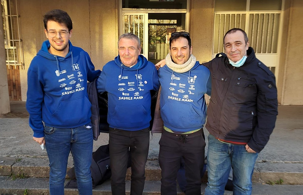 Noa López, Breixo Vidal, Mateo Alonso y Marcos Menduíña representarán al club Xadrez Marín en el campeonato gallego que se celebrará en Padrón del nueve al once de este mes, los dos primeros conocedores de importantes victorias anteriores y los otros dos firmes promesas del ajedrez marinense
