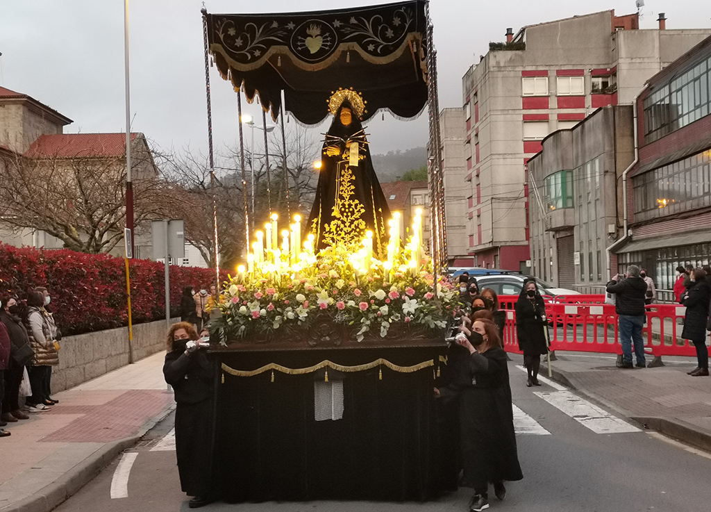 Terminada la novena a la irgen de los Dolores y tras la procesión que ayer salió por las calles de Marín acompañando a la imagen y a las componentes de la veterana cofradía de la Dolorosa que preside actualmente Otilia Novegil, se pone en marcha la Semana Santa que mañana tiene un día importante con la bendición de Ramos y Palmas en la Plaza del Reloj.