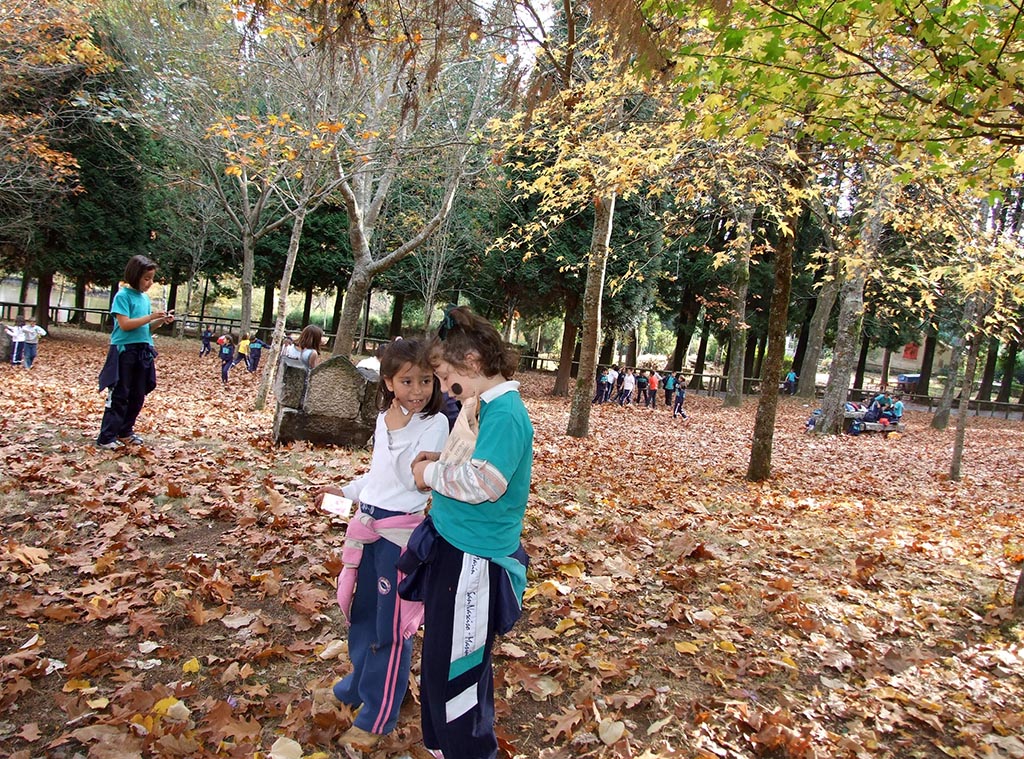 En las fotografías que adjuntamos podemos ver, en una de ellas, una parte de la explanada con su arboleda bajo la que juegan los niños de un colegio un día de magosto otoñal. En la otra, tomada el pasado domingo, la carencia de arboleda para que la gente se ponga morena. La tercera muestra la "lameira" que se forma cortando el paseo ante la casita del Lago.