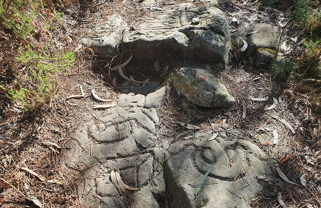 Nos llegan, de un amable seguidor de Carriola, unas fotografías de dibujos a modo de petróglifos impresos en algunas rocas que se encuentran en una de las sendas por las que los caminantes suelen hacer sus andainas, en este caso la de los 25 kilómetros. Nuestro comunicante incluso nos da la referencia exacta de su localización: 271 metros de altitud; 42,374909 de latitud y -8,710857 de Longitud, datos que entenderán perfectamente los expertos en este tipo de localizaciones.