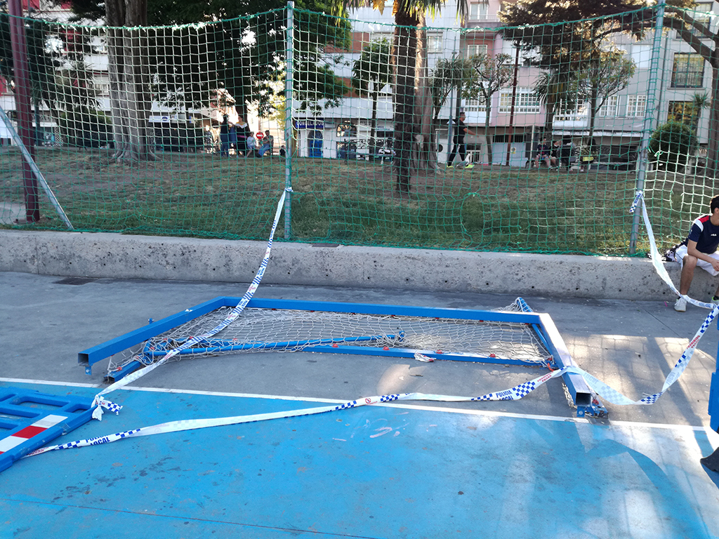 En este caso le tocó el turno de nuevo a las porterías del Parque Eguren, que aparecieron a principios de esta semana rotas, en el suelo, y aunque los operarios intentaron reparar los daños no fue posible hacerlo en su totalidad, pues una de ellas está inservible y habrá que comprar otra para poner en el lugar.