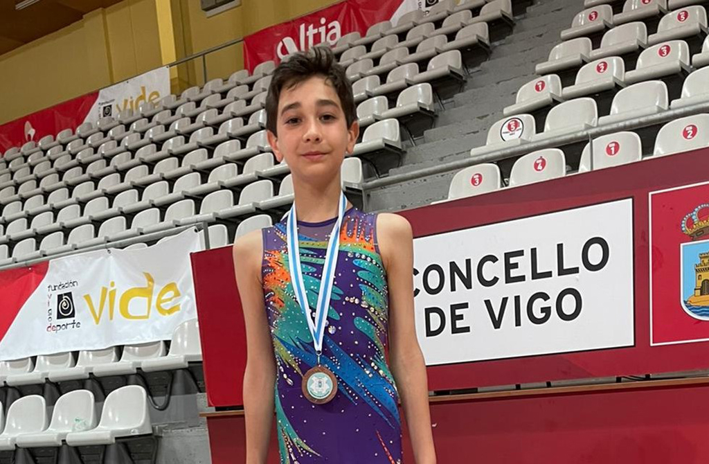 No puede reinar mayor satisfacción en el Club de Gimnasia Rítmica “Agarimo” tras obtener su joven componente Alejandro Pazó Castro la medalla de bronce en la competición del Campeonato Gallego celebrada este fin de semana en Vigo lo que le posibilita para acceder al próximo Campeonato de España. Una muy buena noticia que confirma la trayecoria de este chaval que, desde muy niño, viene mostrado aptitudes para llegar lejos en este difícil deporte/arte de la gimnasia rítmica.