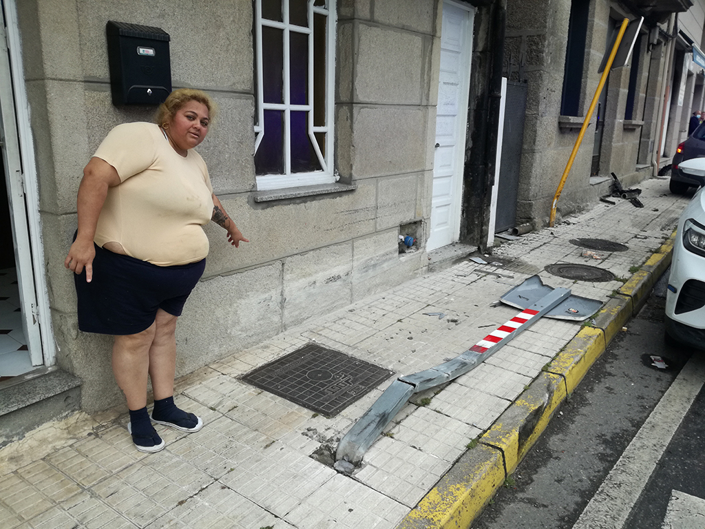 Una mujer muestra el lugar donde fueron atropellados sus familiares, que iban de visita a su vivienda de Seixo