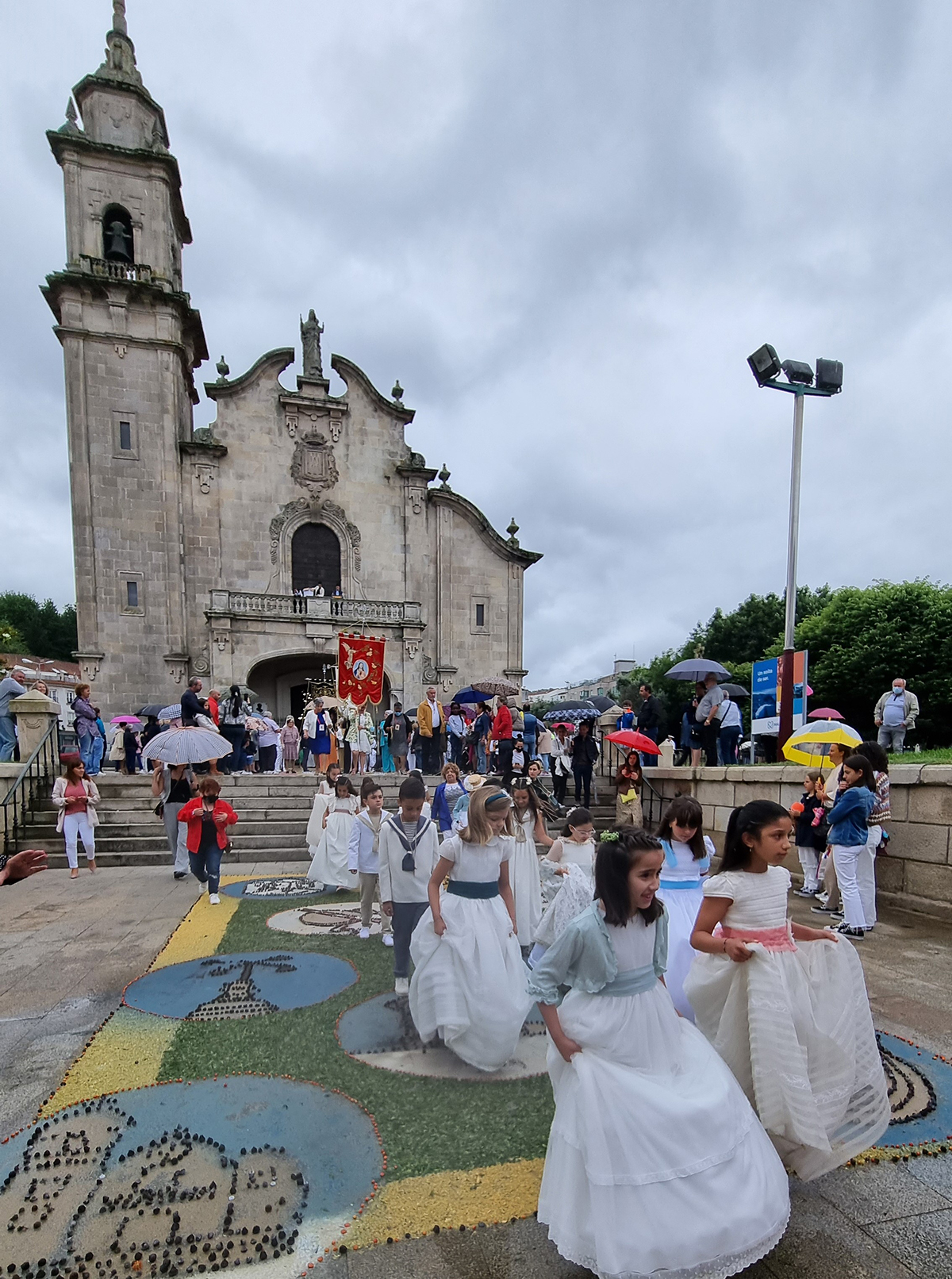 Desde el Nuevo Templo parroquial, donde se celebró la Misa de Corpus, hasta el Antiguo, a donde estaba señalada la recogida de la procesión consiguiente, Marín estuvo engalanado con verdaderas obras de arte realizadas durante la noche y la madrugada por los vecinos del itinerario que realizaron su trabajo incluso bajo los chaparrones más o menos fuertes que fueron cayendo de madrugada perjudicando en algunas zonas de desnivel los preciosos diseños ya consolidados.