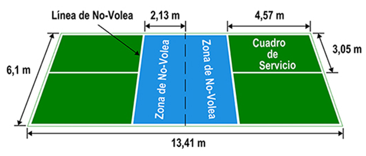 Otra de las grandes ventajas de esta modalidad deportiva es que la instalación de pistas es muy sencilla y no requiere de gran inversión, ya que sólo se necesita una superficie lisa y rígida, y redes portátiles que los propios jugadores pueden llevar. El campo de juego tiene unas dimensiones de 13,41 metros de largo y 6,1 metros de ancho.