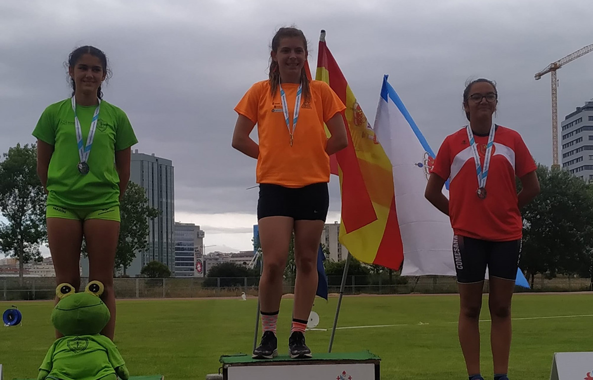 Ya el domingo, nuestra "completa" Antía García (actual monitora de nuestras escuelas deportivas), nos daba otra alegría subiéndose al segundo cajón del podium obteniendo la plata tras completar las 6 pruebas (100m.v., Altura, Peso, Longitud, Jabalina, 600m), de las que se compone la disciplina del "hexatlón" repartidas en las dos jornadas del Campeonato (sábado y domingo).