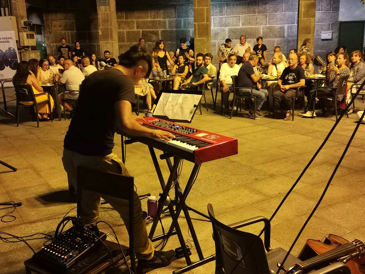 Una decena de grupos actuaron en otros tantos rincones de Marín llenando de alegría a las personas con melodías presentes y pasadas