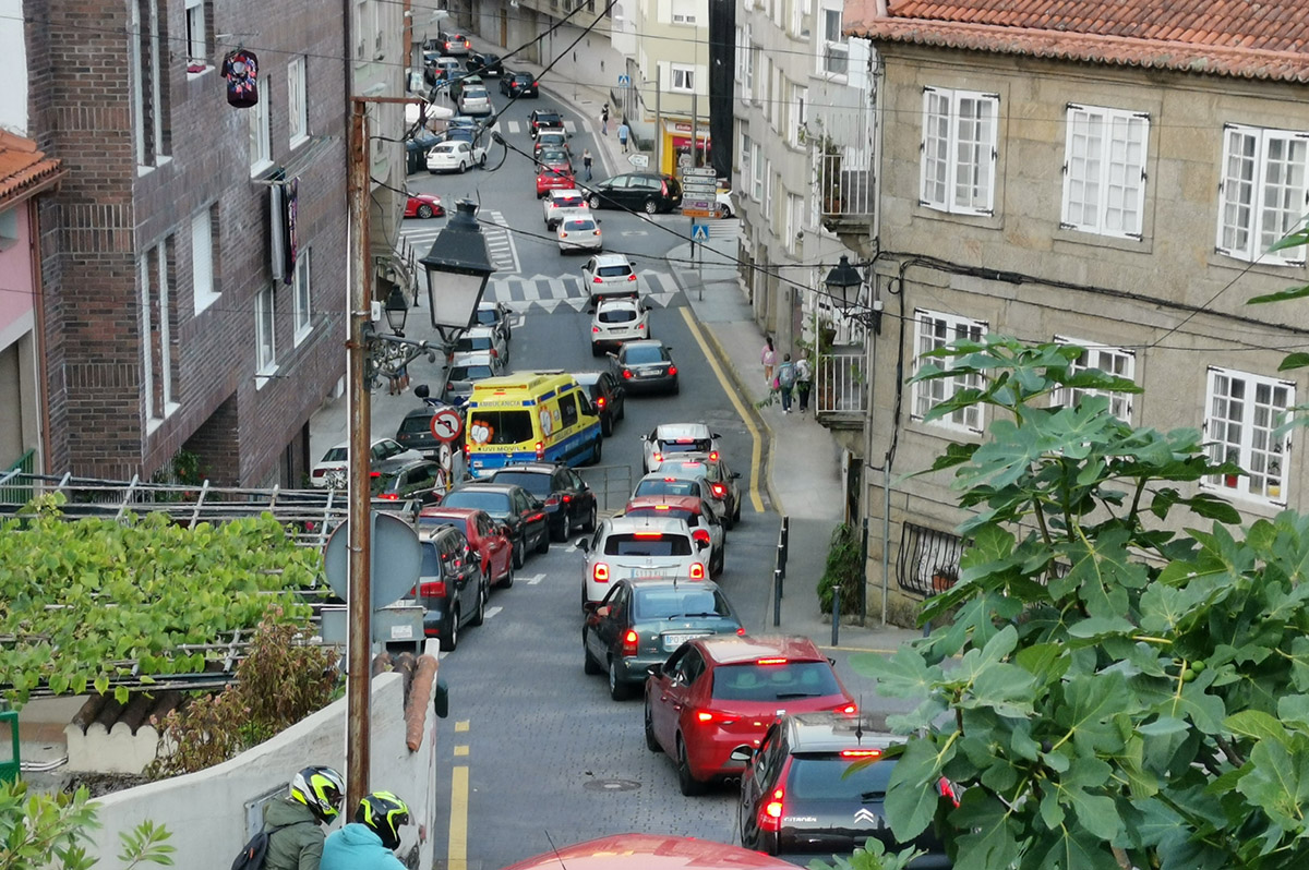 Fue el primer día de corte de tráfico hacia la Plaza de España para el montaje de la orquesta y de único carril de circulación hacia Bueu en la Avenida de Ourense, lo cual provocó un monumental atasco en horario de vuelta de las playas en la P0551 desde Aguete y todos los accesos hacia Marín, justo el día que el Concello había pedido a la ciudadanía que no utilice el coche particular para desplazamientos cortos y facilitar así la circulación y evitar atascos.