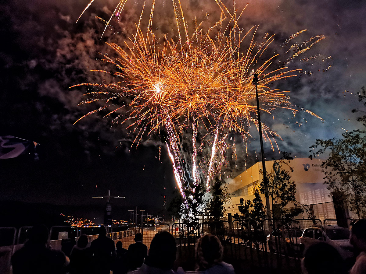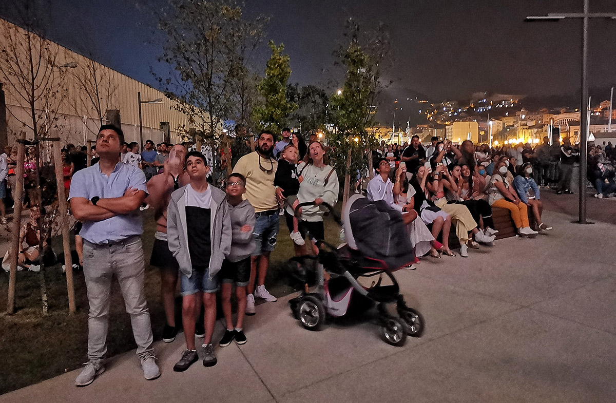 Dos minutos antes de la hora de inicio sonaron las habituales "salvas" que hacen llamamiento para que todo el mundo abandone la verbena y el recinto de fiestas y se dirija al lugar desde donde pueda ver bien los fuegos artificiales. Y a las doce en punto de la noche comenzaron, en una sesión bastante dinámica que duró unos veinte minutos y tuvo pendientes a miles de marinenses desde el recién inaugurado paseo Alcalde Antonio Blanco y el pequeño espigón que sirve de abrigo al puerto deportivo.