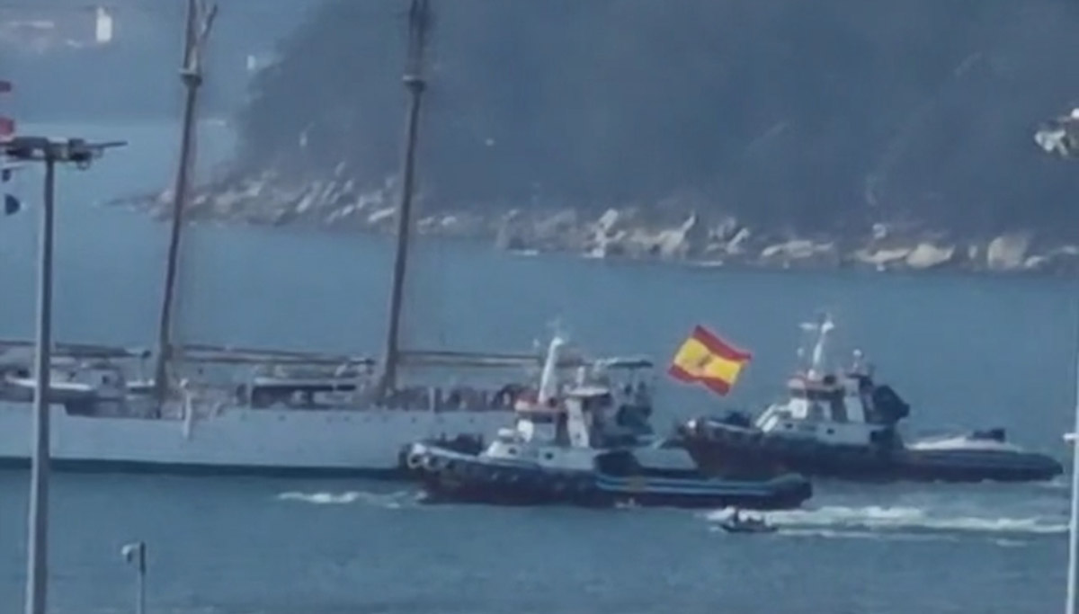 El buque escuela realizó su desatraque del muelle de Torpedos y enfilamiento de la boca de la Ría con la colaboración de los remolcadores de Amare Marín.