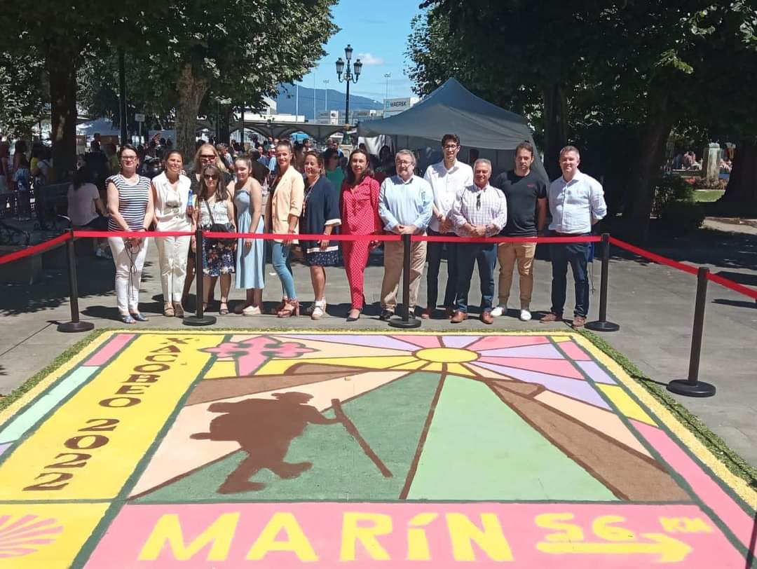 A Romaría continuou tamén pola tarde con gran presencia de público e animación de distintos colecivos folclóricos que actuaron no recinto que se atopaba presidido pola alfombra xacobea internacional confeccionada la entrada da alameda polos alfombristas marinenses que reproduxeron fielmente o deseño do artista portugués Antonio Cunha e que se fixo en máis de 300 cidades do mundo para exaltar o Xacobeo como expresión mundial de fe e hermanamento.